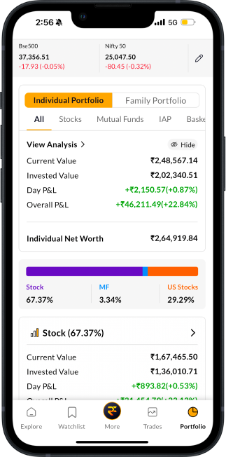 With the RIISE app, you can now trade and invest across 6,000+ stocks, 250+ Mutual Fund Schemes, US Stocks, Future & Options, Commodities, Bonds, Ready-made Portfolios, IPO, Insurance and more at just 1-click