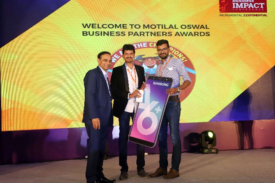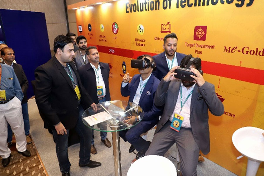 Mr. Motilal Oswal and Mr. Ajay Menon checking out the latest technological developments at MOSL through VR glasses.