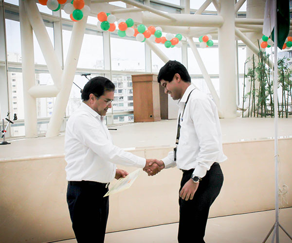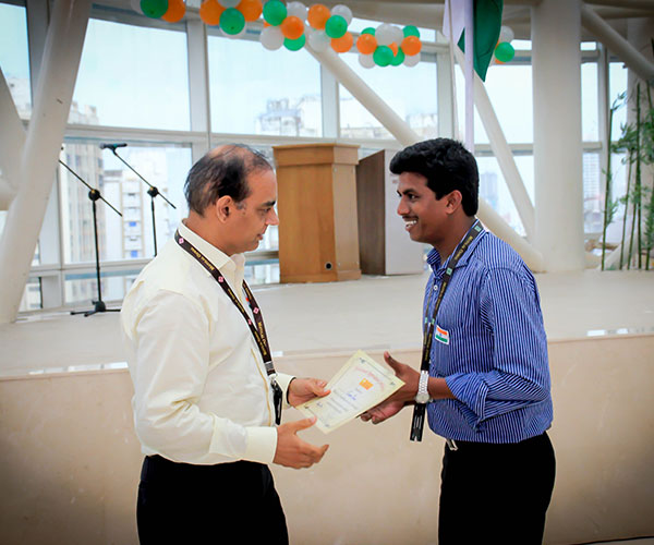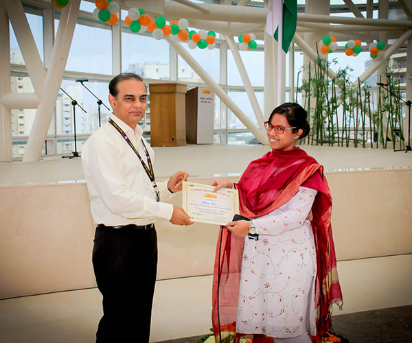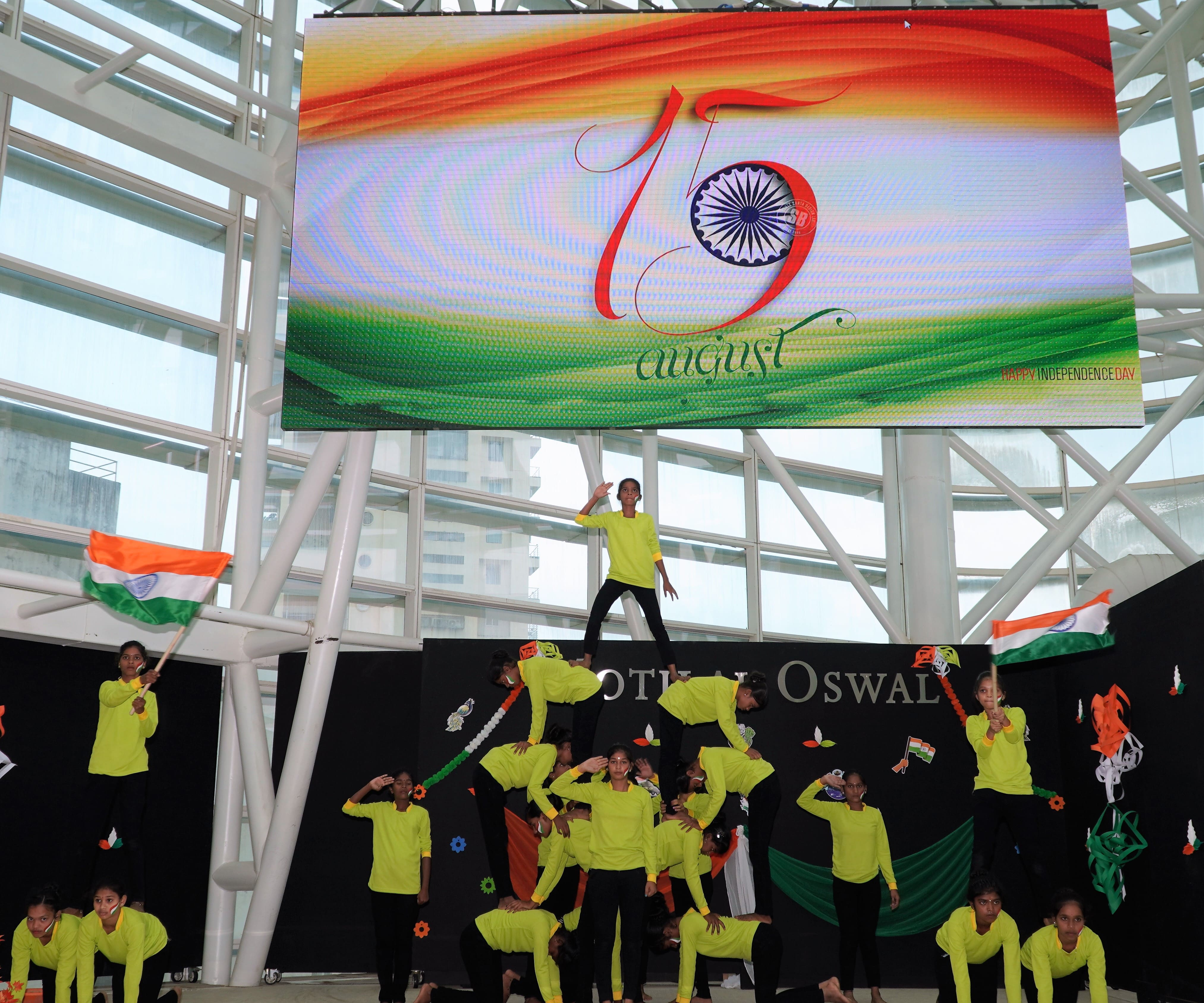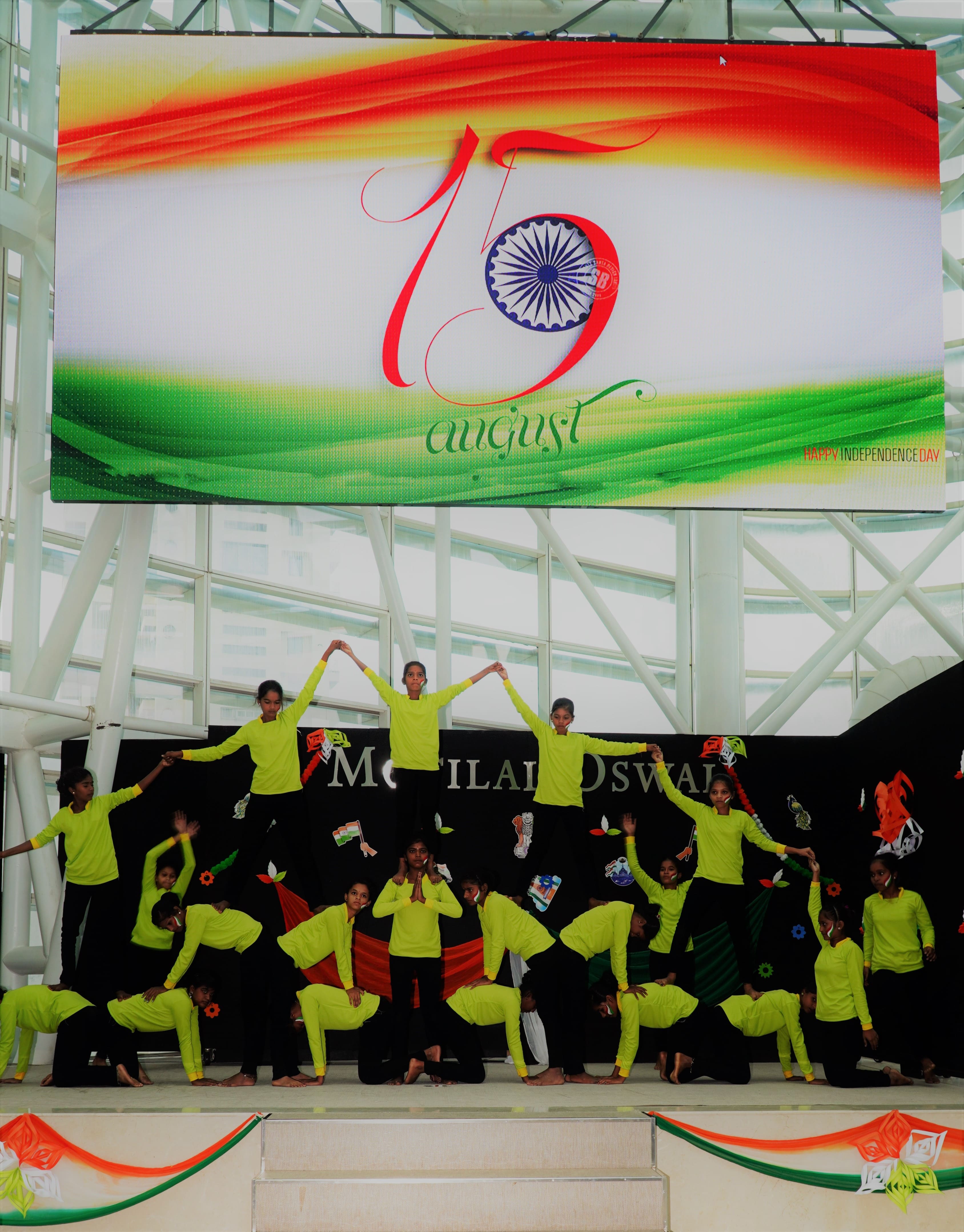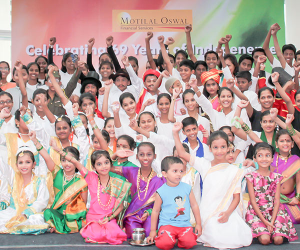 The Independence Day celebration at MOSL was a memorable event. On the eve of 14th August the Motilal Oswal Tower was filled with the titters of students of Saraswati Mandir High School. More than 80 students of Class 1-8 visited the MO Tower. They were extremely excited and happy as it was their first ever visit to a Corporate. The children presented dance performances and sang patriotic songs. Everyone was awestruck to see their talent.