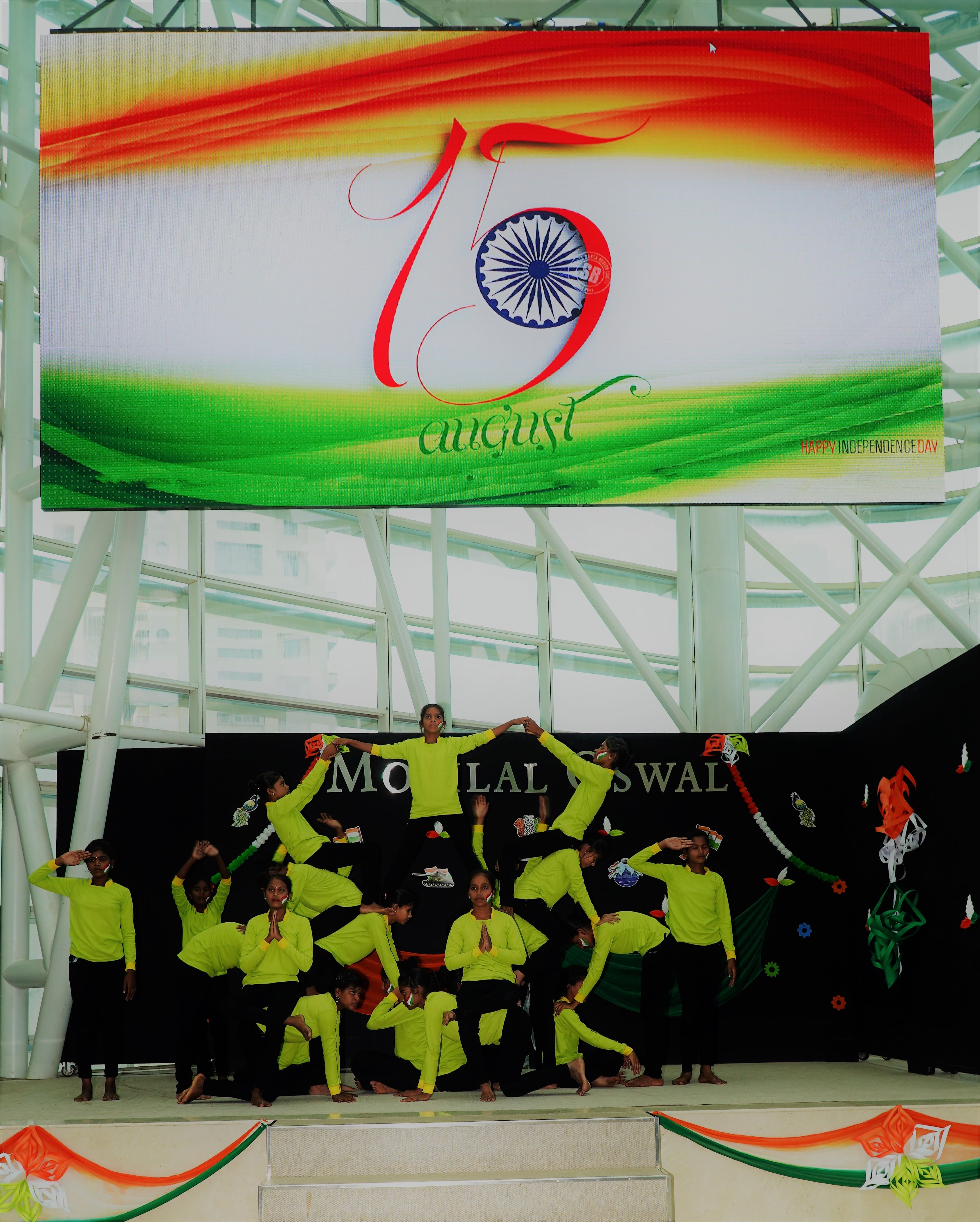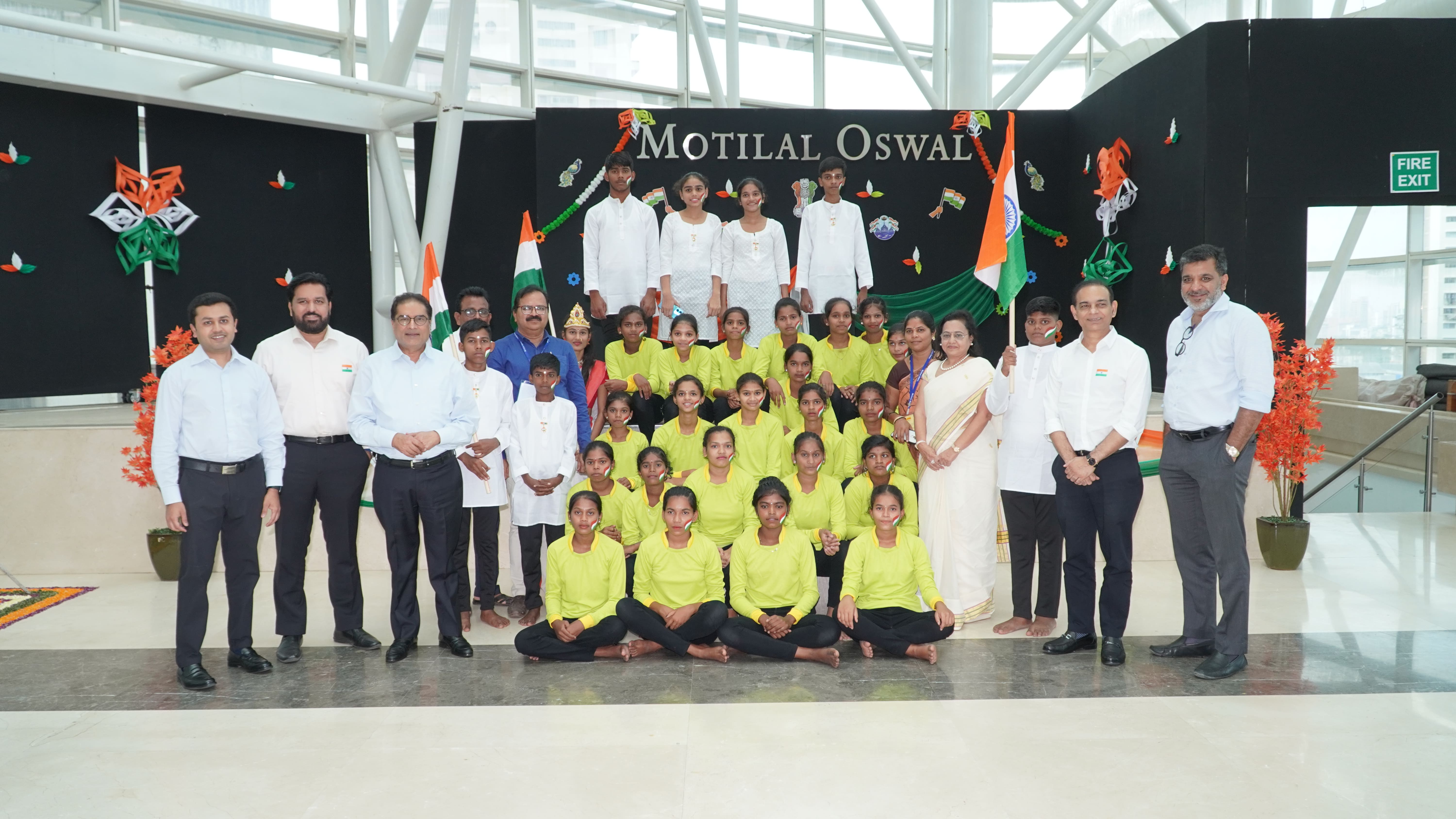 On the eve of Independence Day, Motilal Oswal Tower was transformed into a hub of national pride as it celebrated the event in the company of enthusiastic school students from schools from Wada. The heart of the celebration revolved around the captivating performances of the school students. The highlight of the event was the pyramid formations by the girls. The event stood as a poignant reminder that the flame of patriotism burns eternal and that the spirit of unity will always guide us towards a brighter tomorrow.