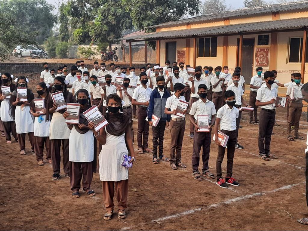 Slowly the students are getting back to schools and the classroom teaching- learning is resuming. To fuel-up the spirits of students, Motilal Oswal Foundation gifted notebook sets to 4600+ students at Wada. Geared with these brand new notebooks the students were thrilled to be back to normal school routine.