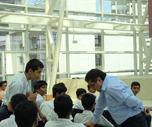 Mr. Agrawal highlighted the need to develop reading habit, especially newspapers so as keep one updated about the world. Mr. Agrawal also focused on the need to have a role model. The children also interacted with Mr. Agrawal, asking him questions about career choices, learning techniques etc. He suggested the students to give their 100% to their studies as this is the only thing that will create the foundation of their future.