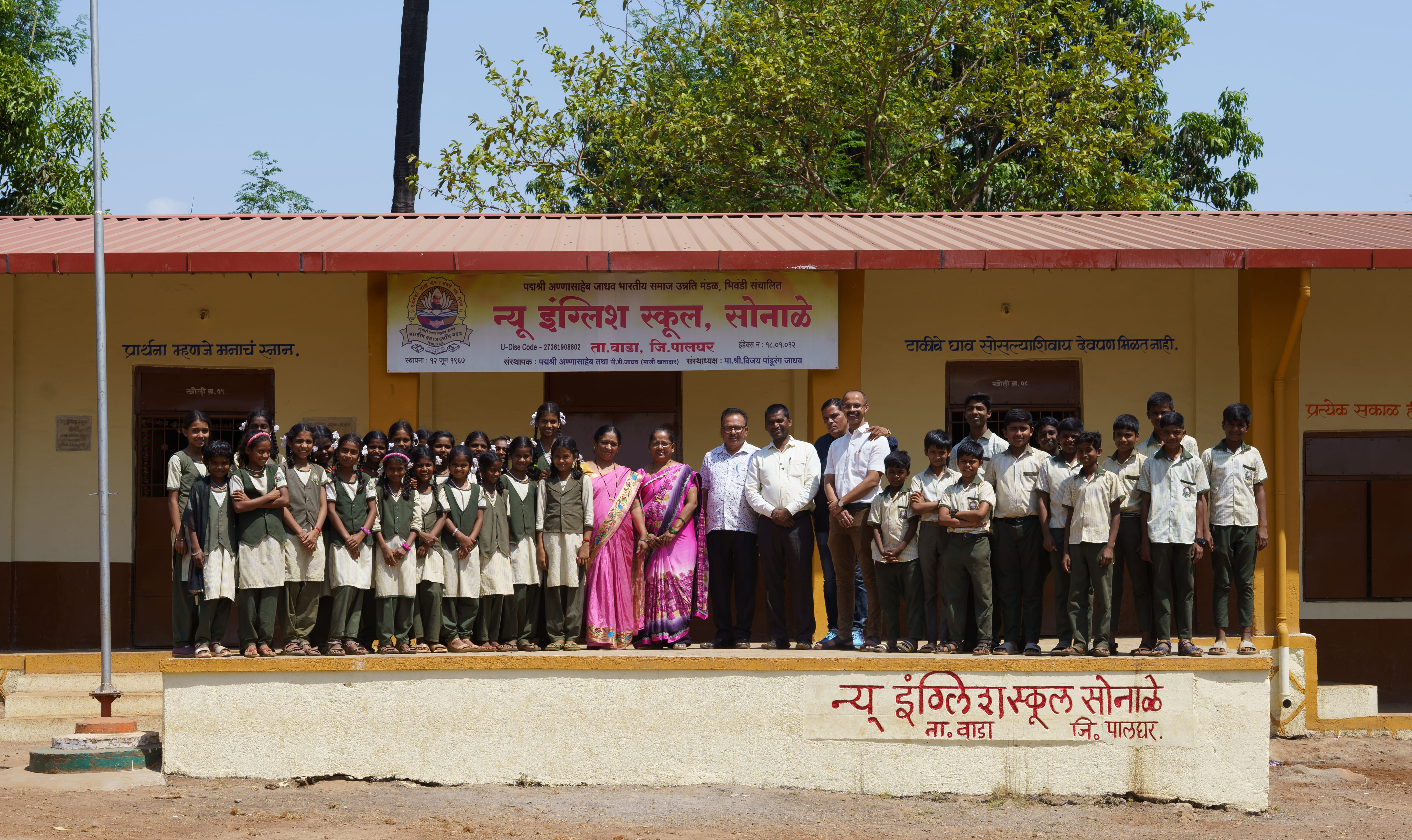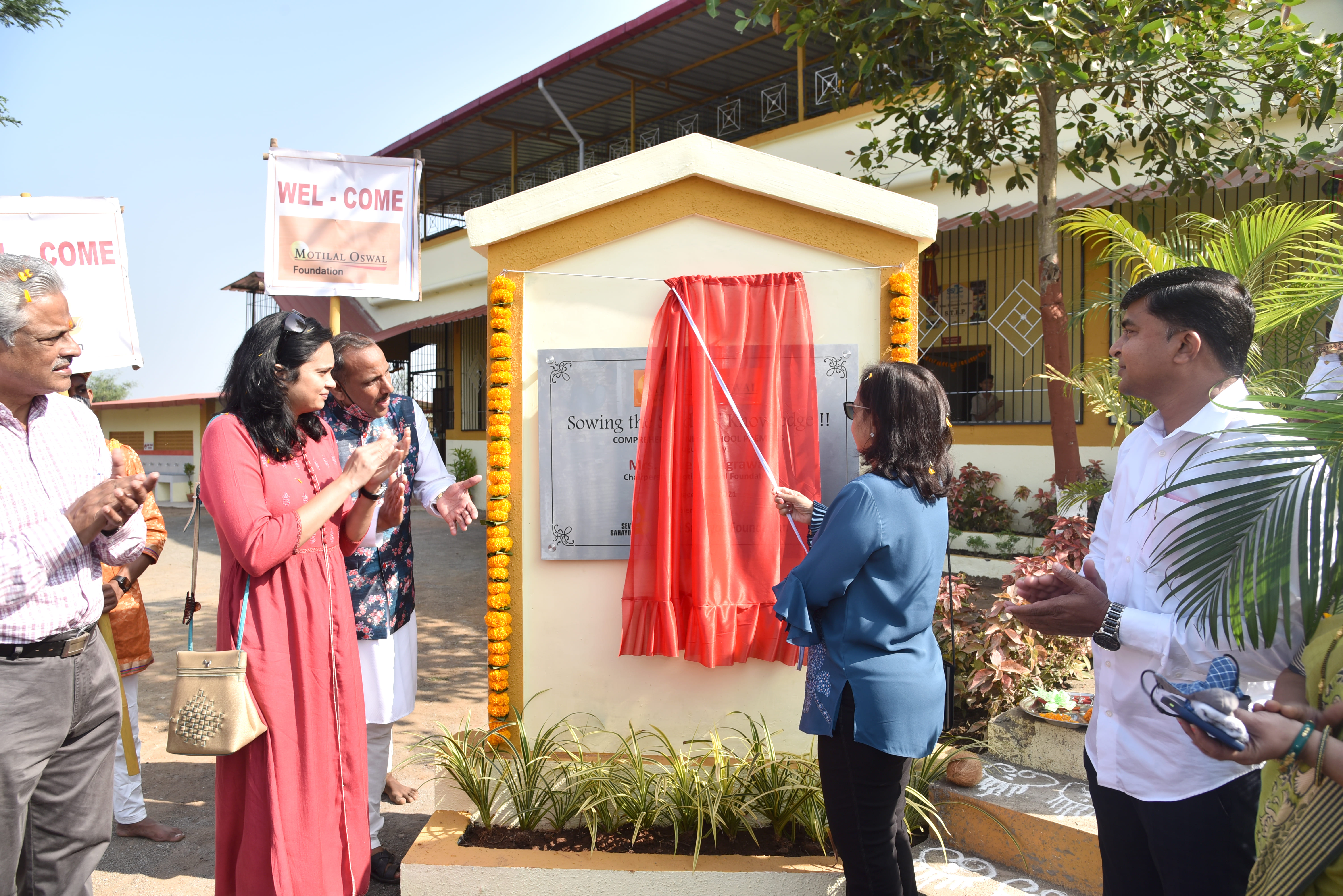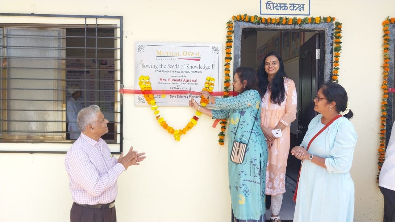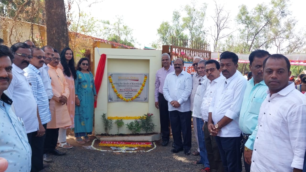 Motilal Oswal Foundation (MOF) achieved another milestone in its journey of providing quality education to the children at Wada. On 29th March, we dedicated a newly transformed school premises to 450+ students of New English School at Sonale, Wada. This school was established in 1967, thus the structure was in dilapidated state, at places to such an extent that it was dangerous for students and staff. We have built new principal and staff room, well-equipped washrooms with hand-wash, drinking water station, staircase and main entry. Refurbished the classrooms by adding more lights and fans, new black boards, new flooring, increased the height and installed new roof shade. To ensure year round water supply in the school, we have installed rainwater-harvesting system. Along with this, we have added wall library with 150+ books in each classroom, provided science lab material and kits for different sports, created book club for providing textbooks for 9th and 10th STD students, donated computers.
