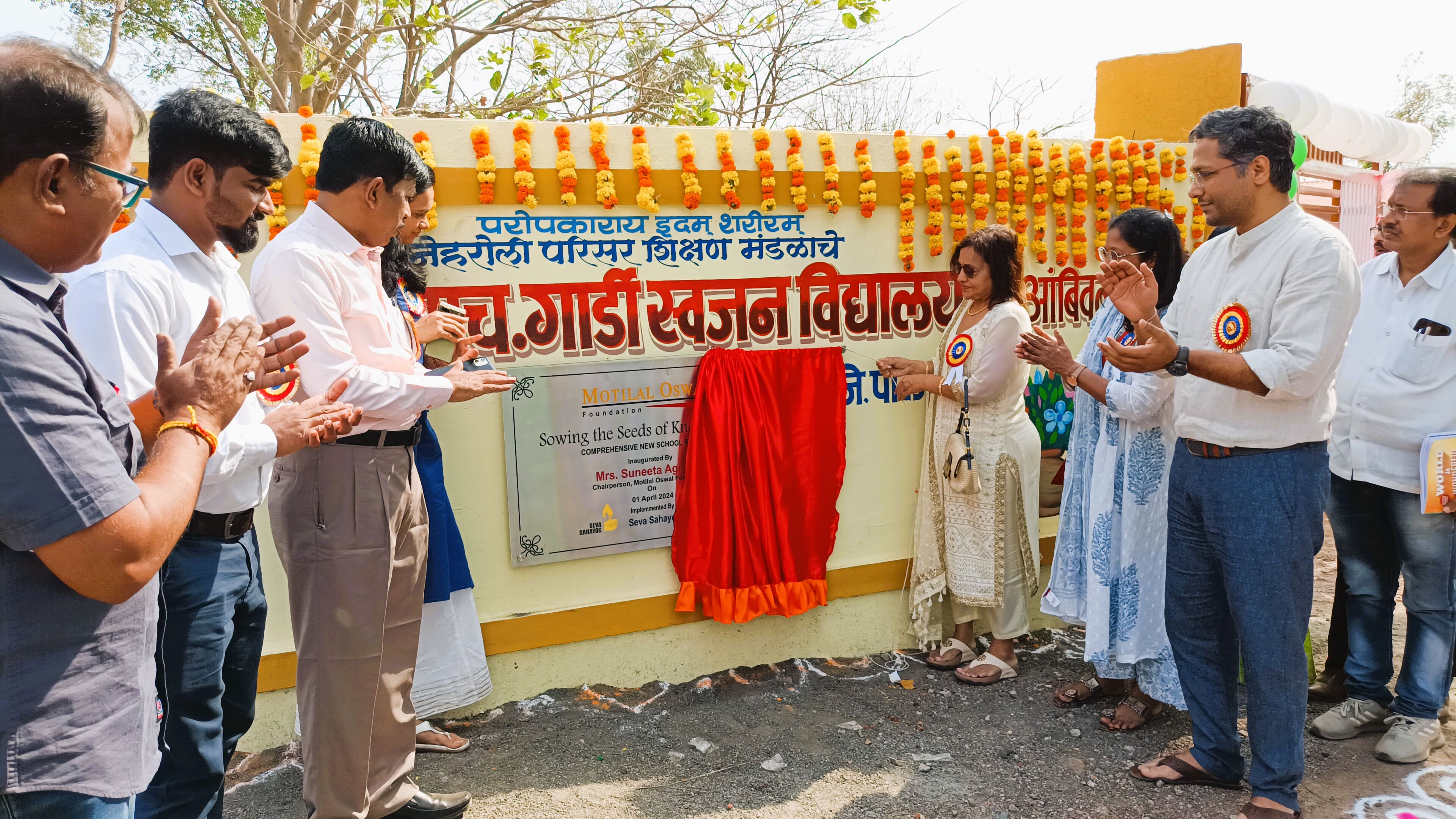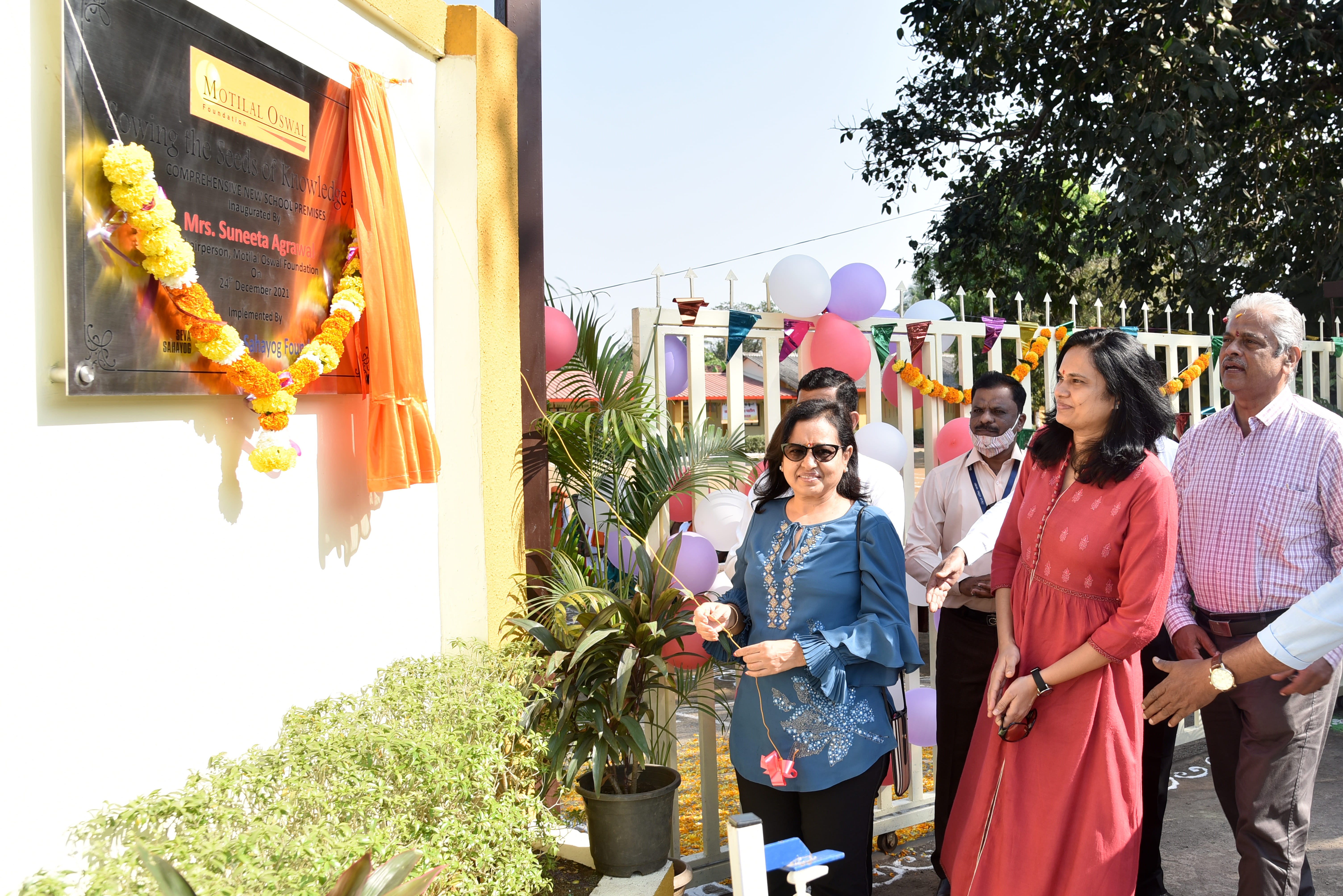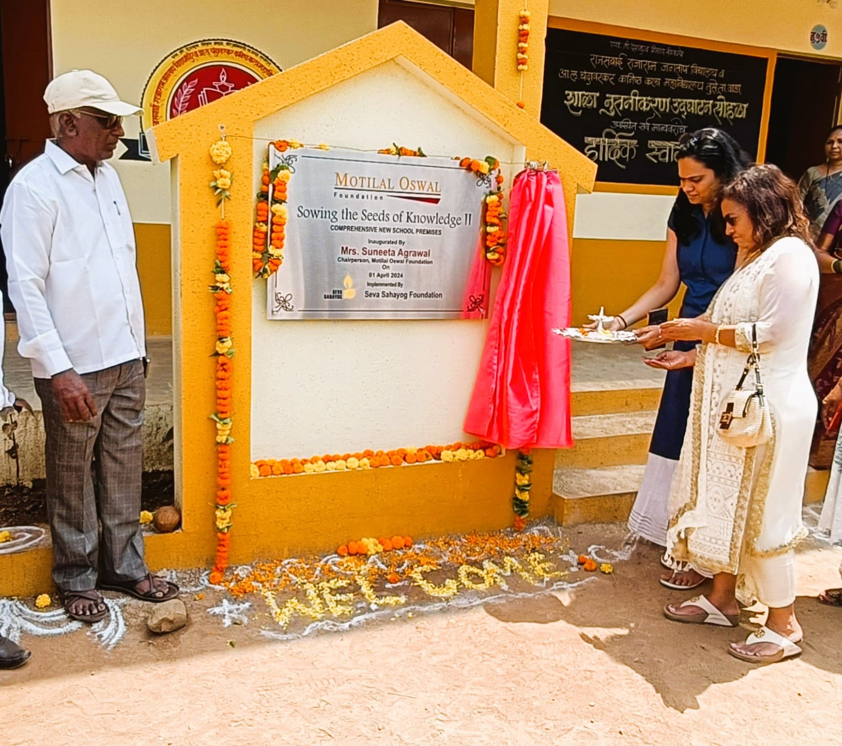 Motilal Oswal Foundation (MOF) achieved another milestone in its journey of providing quality education to the children at Wada. On 29th March, we dedicated a newly transformed school premises to 450+ students of New English School at Sonale, Wada. This school was established in 1967, thus the structure was in dilapidated state, at places to such an extent that it was dangerous for students and staff. We have built new principal and staff room, well-equipped washrooms with hand-wash, drinking water station, staircase and main entry. Refurbished the classrooms by adding more lights and fans, new black boards, new flooring, increased the height and installed new roof shade. To ensure year round water supply in the school, we have installed rainwater-harvesting system. Along with this, we have added wall library with 150+ books in each classroom, provided science lab material and kits for different sports, created book club for providing textbooks for 9th and 10th STD students, donated computers.