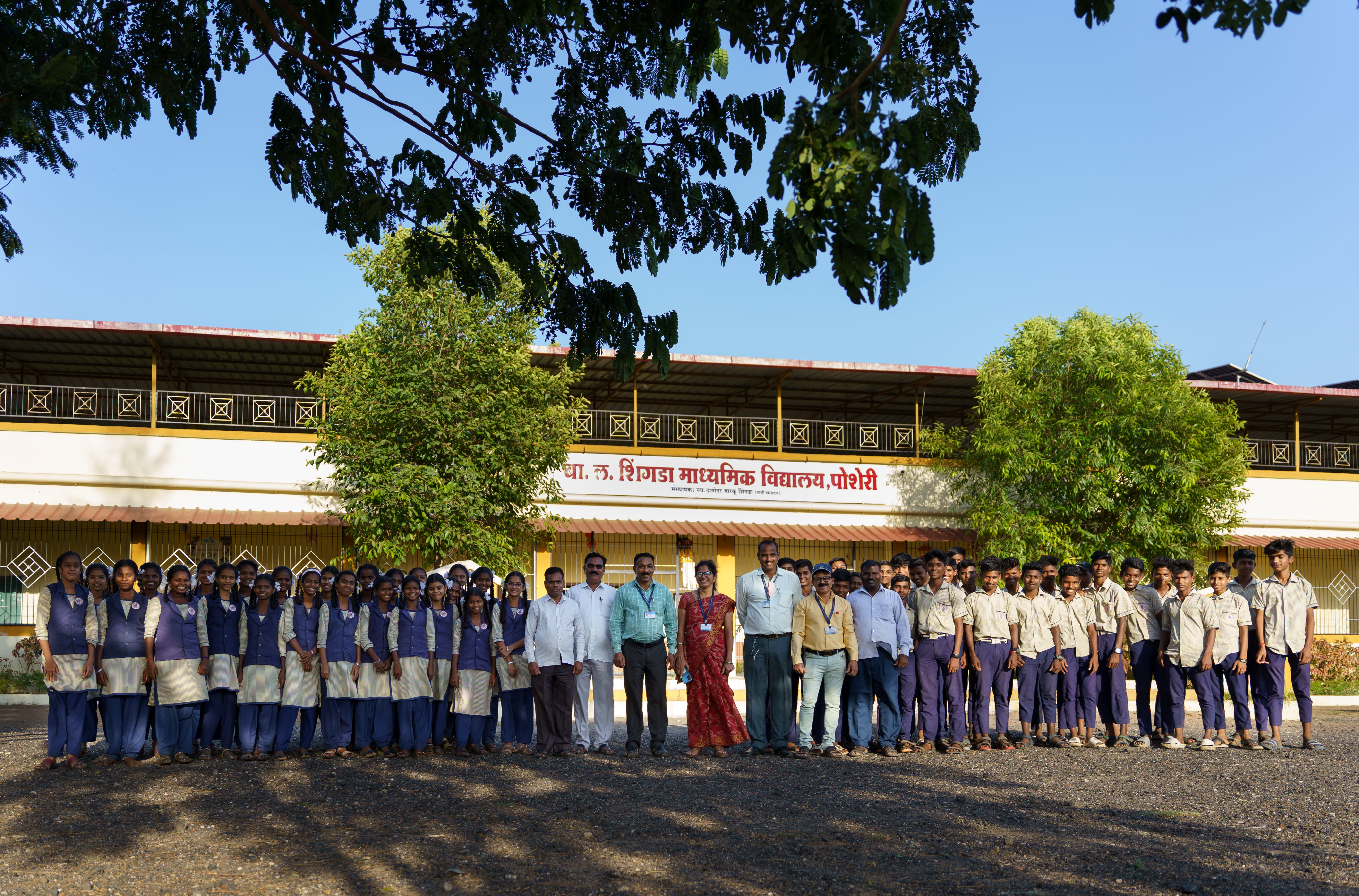 B.Y. Patil Vidyalaya, Asanas is the first school that the Foundation revived. The school is located in a very remote area and caters to children from multiple nearby villages. This secondary school is the only school available for 450+ students of Asanas and nearby villages. The Foundation has built sanitation units, drinking water station, new classrooms, and boundary wall and repaired the existing structure. The school used to face water issues, to resolve the same rainwater harvesting system was also installed. The renewed school became a topic of discussion in the entire area. Students and teachers were thrilled to use the new facilities. Along with infrastructure, we also focus on the holistic development of students and teachers. While teachers are helped with subject specific trainings, for students we have provided English Language lab, sports kits, library, and material for science lab and career guidance sessions.