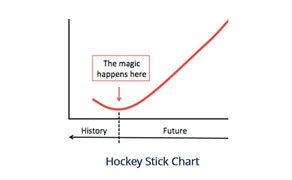 What is the relation between the hockey stick pattern and the stock market?