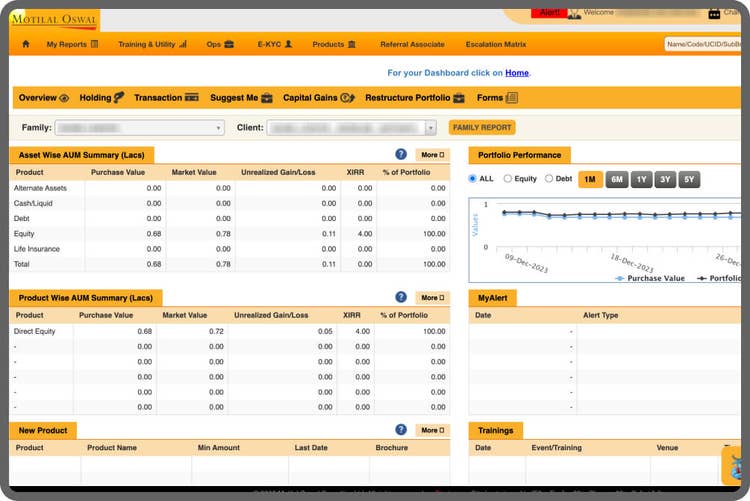 Subscribe clients to various investment products (Intelligent Advisory Portfolios, Mutual Funds, Insurance, FDs, Bonds, PMS, IPOs, NFOs, Sensibull, TradeGuide Signal) via MO First App & Web.