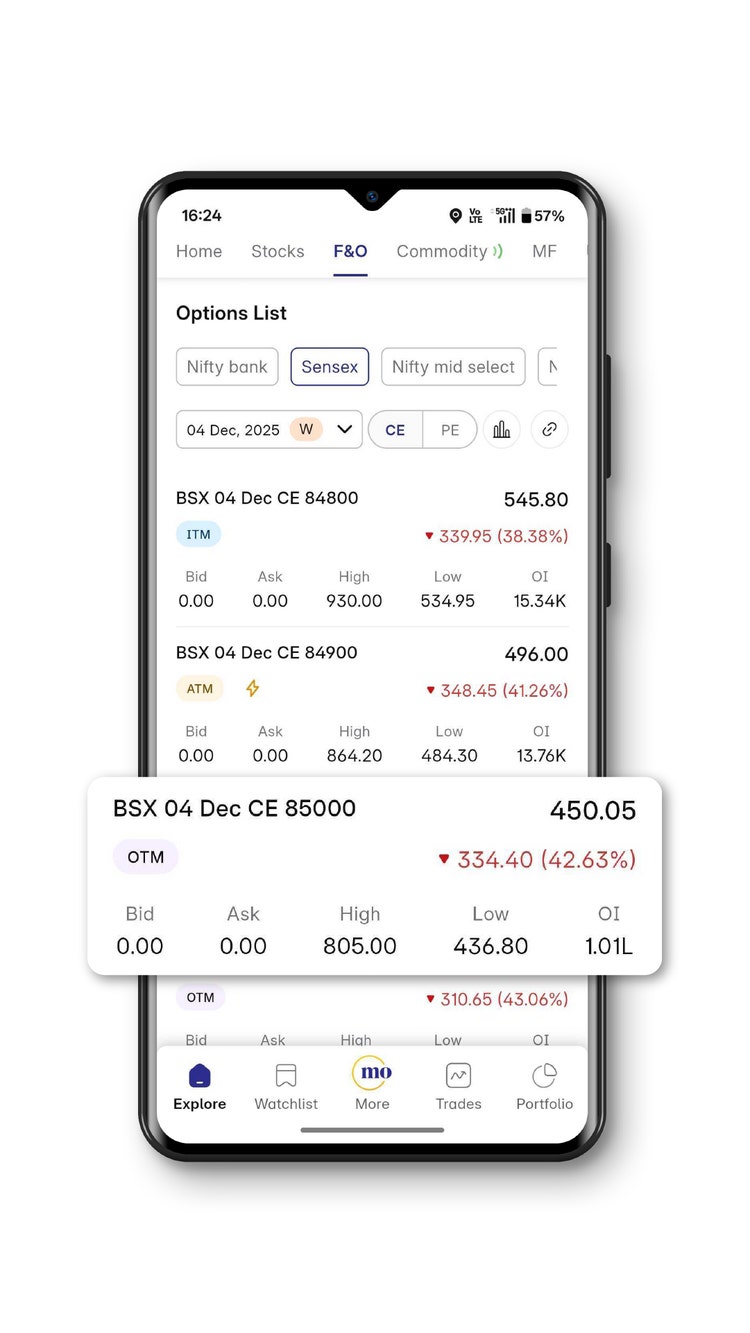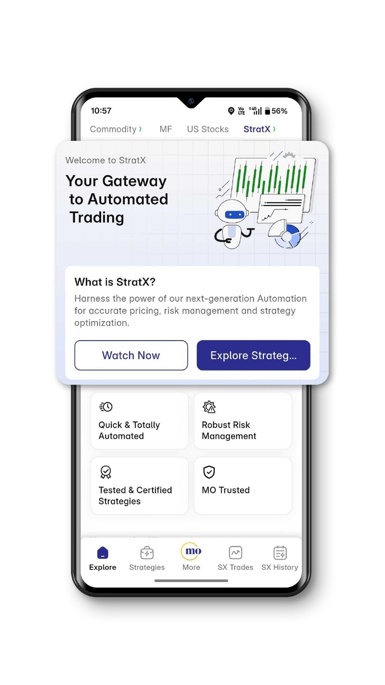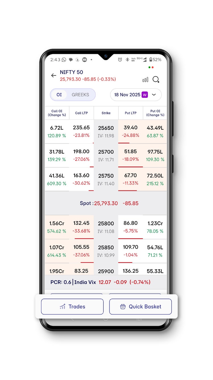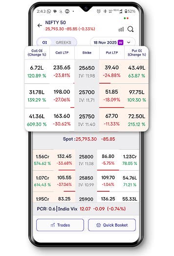 So you would open the app → go to F&O / Options section → look for the “Strategies” or “Options Store” module → select a ready-made strategy and execute.