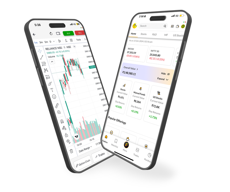 With the RIISE app, you can now trade and invest across 6,000+ stocks, 250+ Mutual Fund Schemes, US Stocks, Future & Options, Commodities, Bonds, Ready-made Portfolios, IPO, Insurance and more at just 1-click