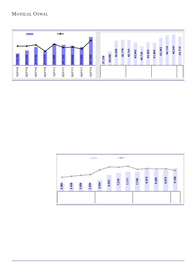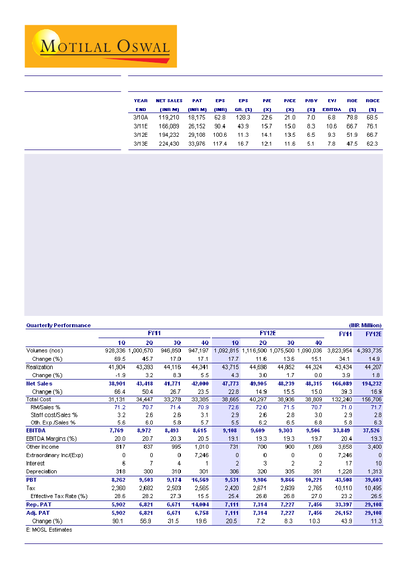 higher RM cost. Despite increase in cash balance to INR47.3b (INR42.4b as at March 2011), other income was