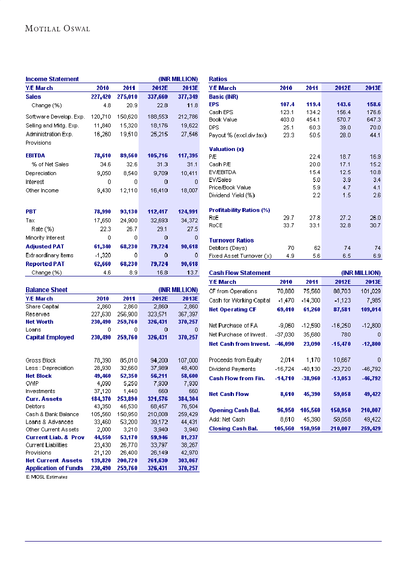 (v/s INR152.5 earlier) for FY12 and FY13 respectively. 1% change in INR/USD impacts our EPS by 1.6%.