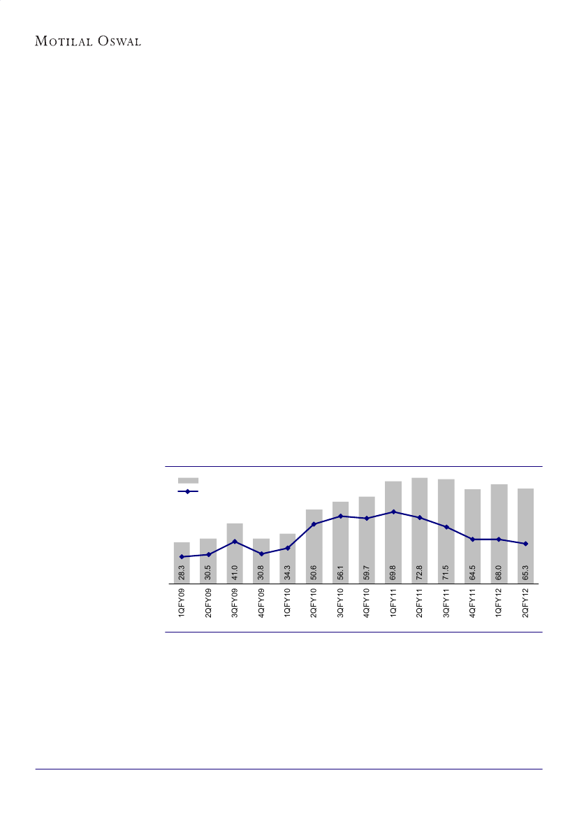196bp YoY in 2QFY12. However, the impact of high raw material prices was partially offset by flat staff costs (7.6%
