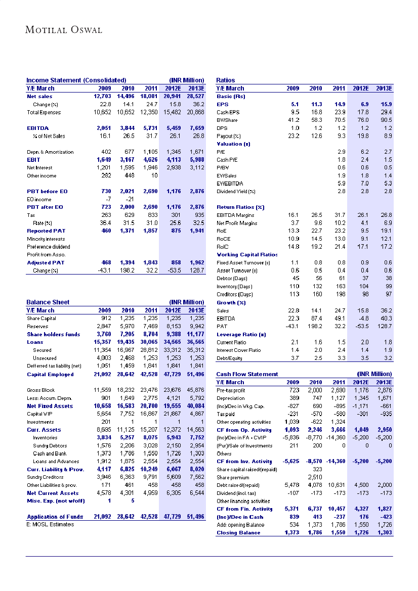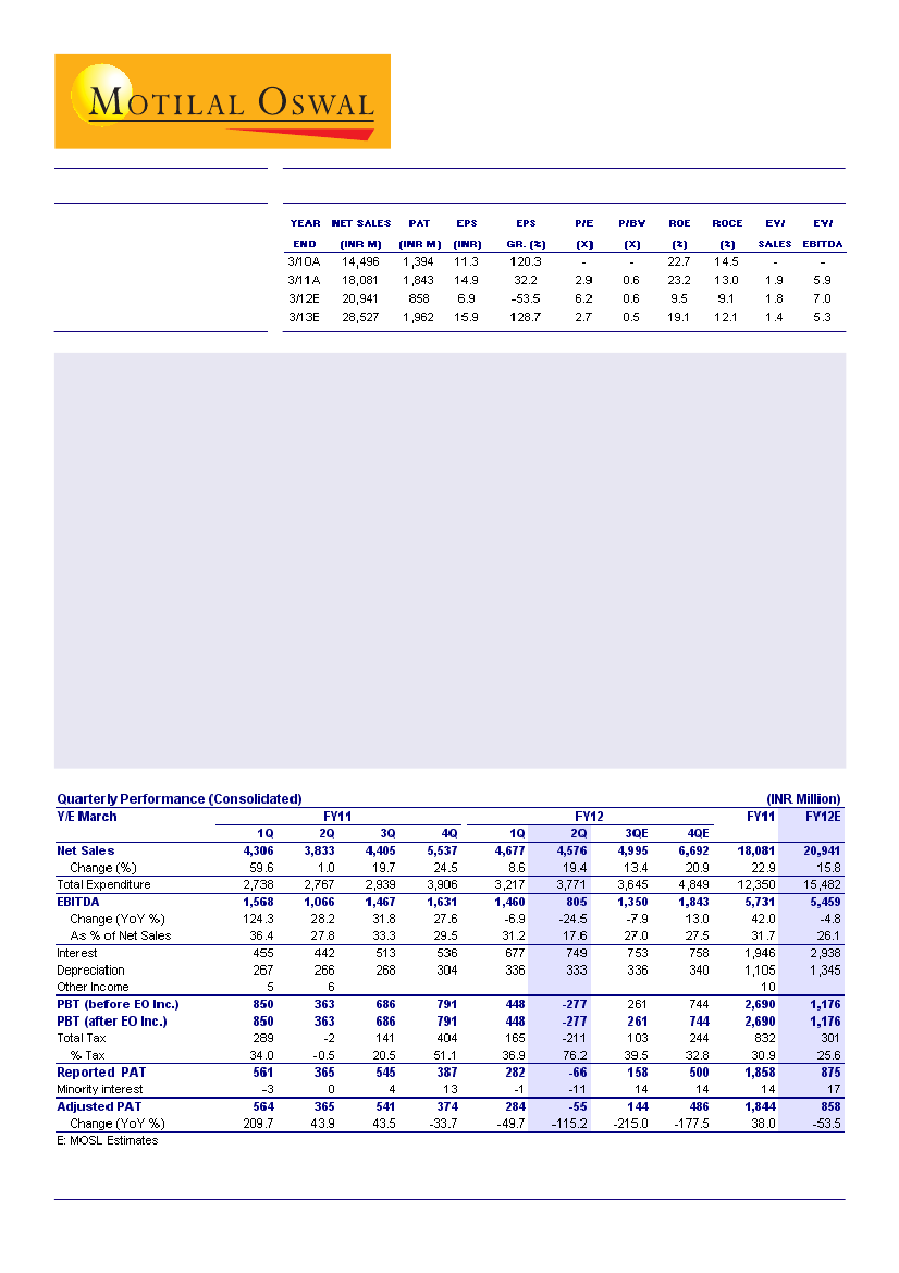 sector), high interest cost and margin pressure in iron ore and manganese mining. The stock trades at 2.7x FY12E