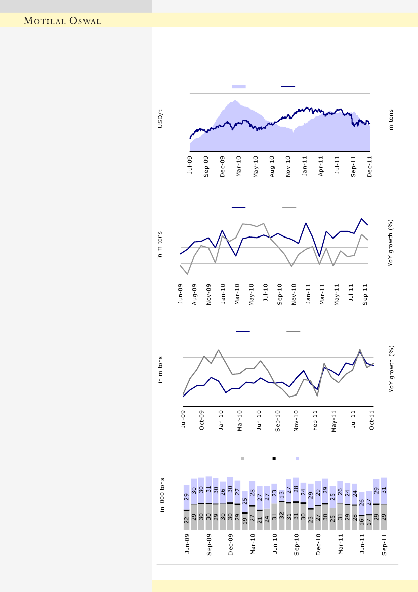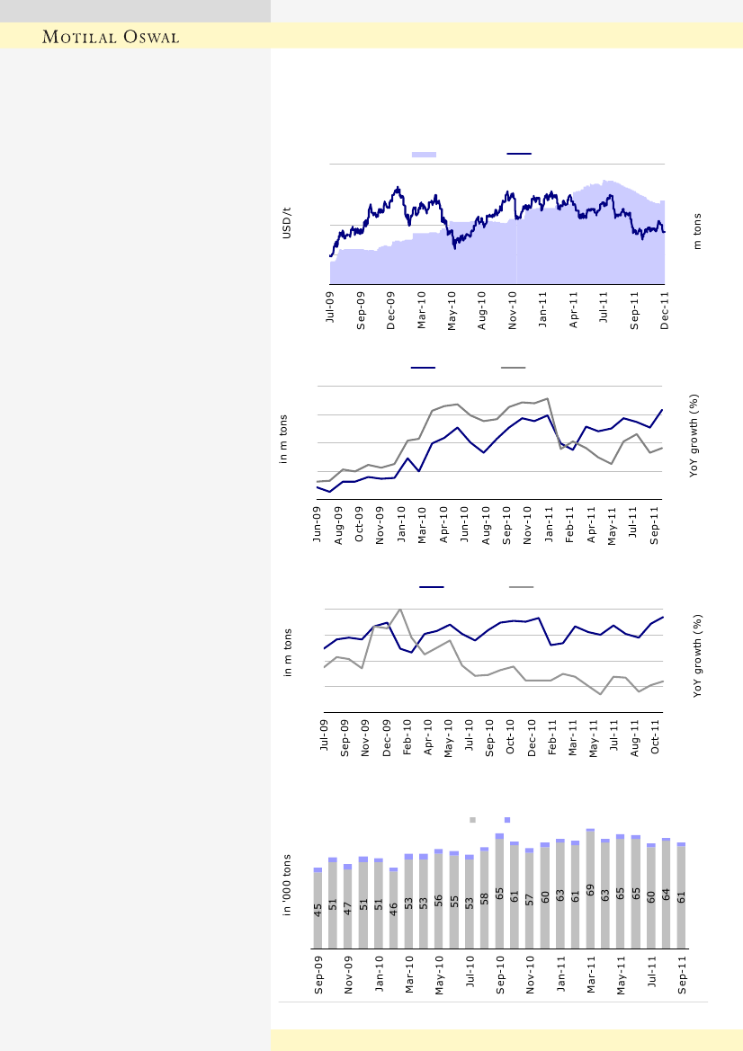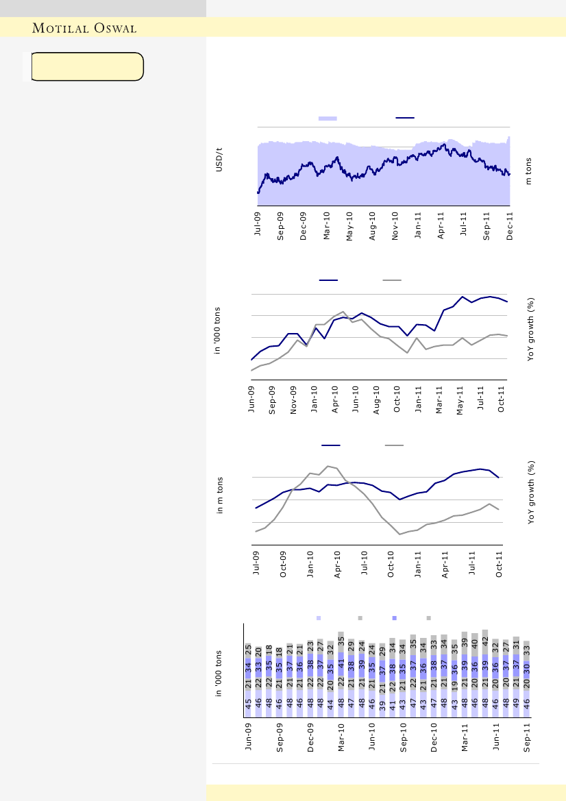 just 3%, 8% and 5% QoQ, respectively. Similarly, average steel prices have