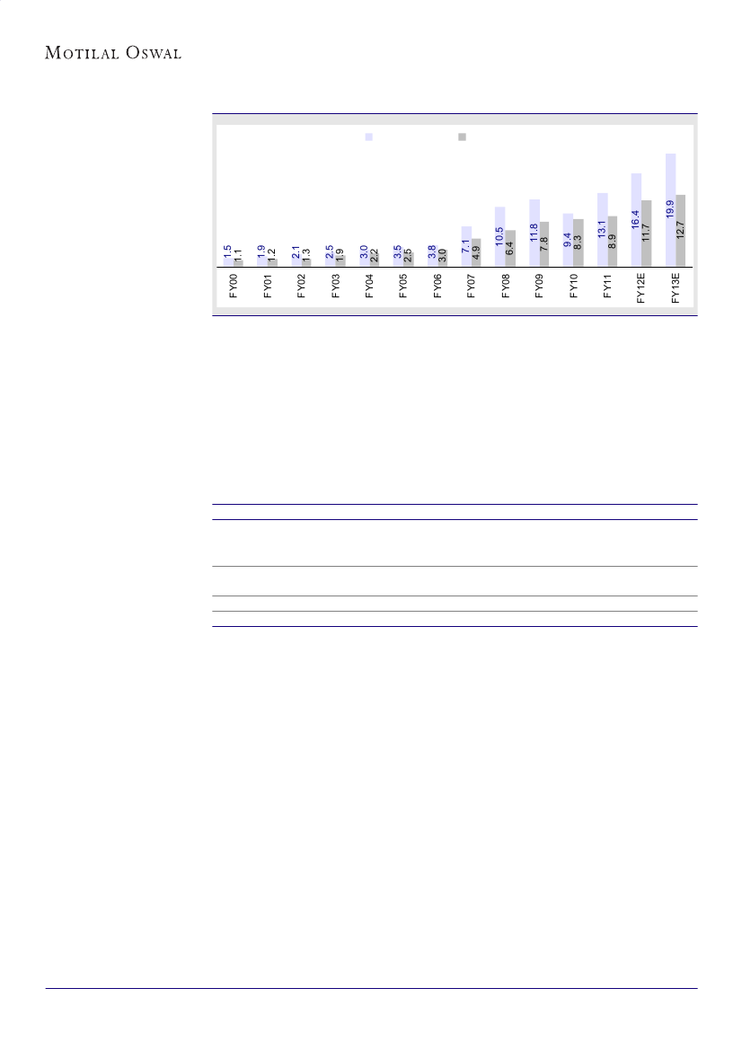 rate from 9% in FY11 to 19% in FY13. We estimate RoCE and RoE of 25%+ for the