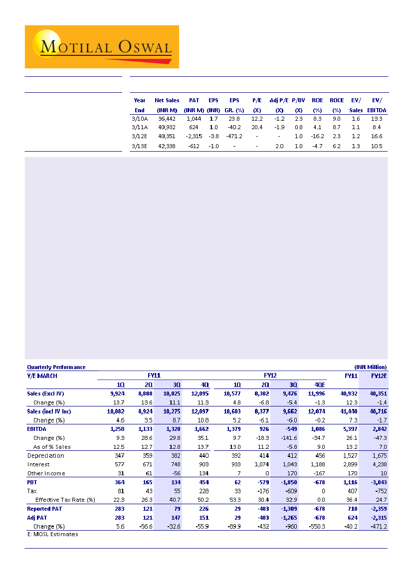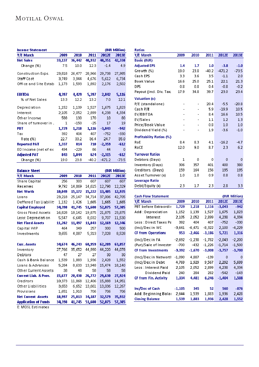 in FY12 and INR314m in FY13. Revised net loss for FY12 stands at INR2.3b (INR1.15b earlier) and for FY13 at