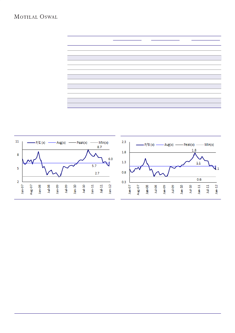 and INR268 in FY13. Stock trades at 0.9x BV FY12 and 0.8x BV FY13. Maintain