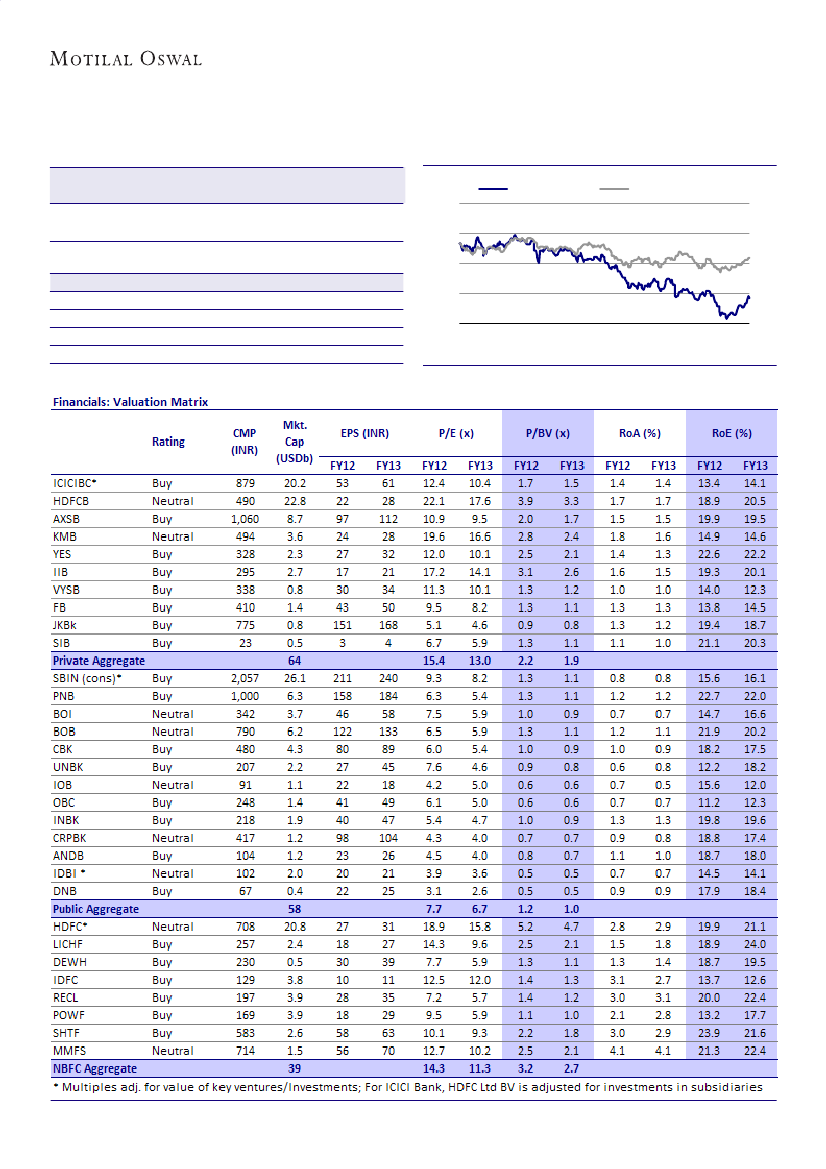 be 12.2% and 18.2% over FY12/13, EPS of INR27.1 in FY12 and INR45.4 in FY13. BV is expected to be INR232 in FY12