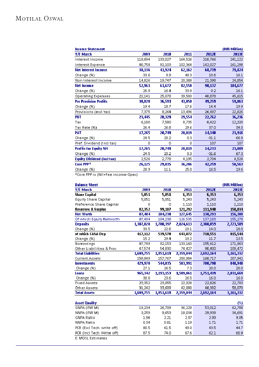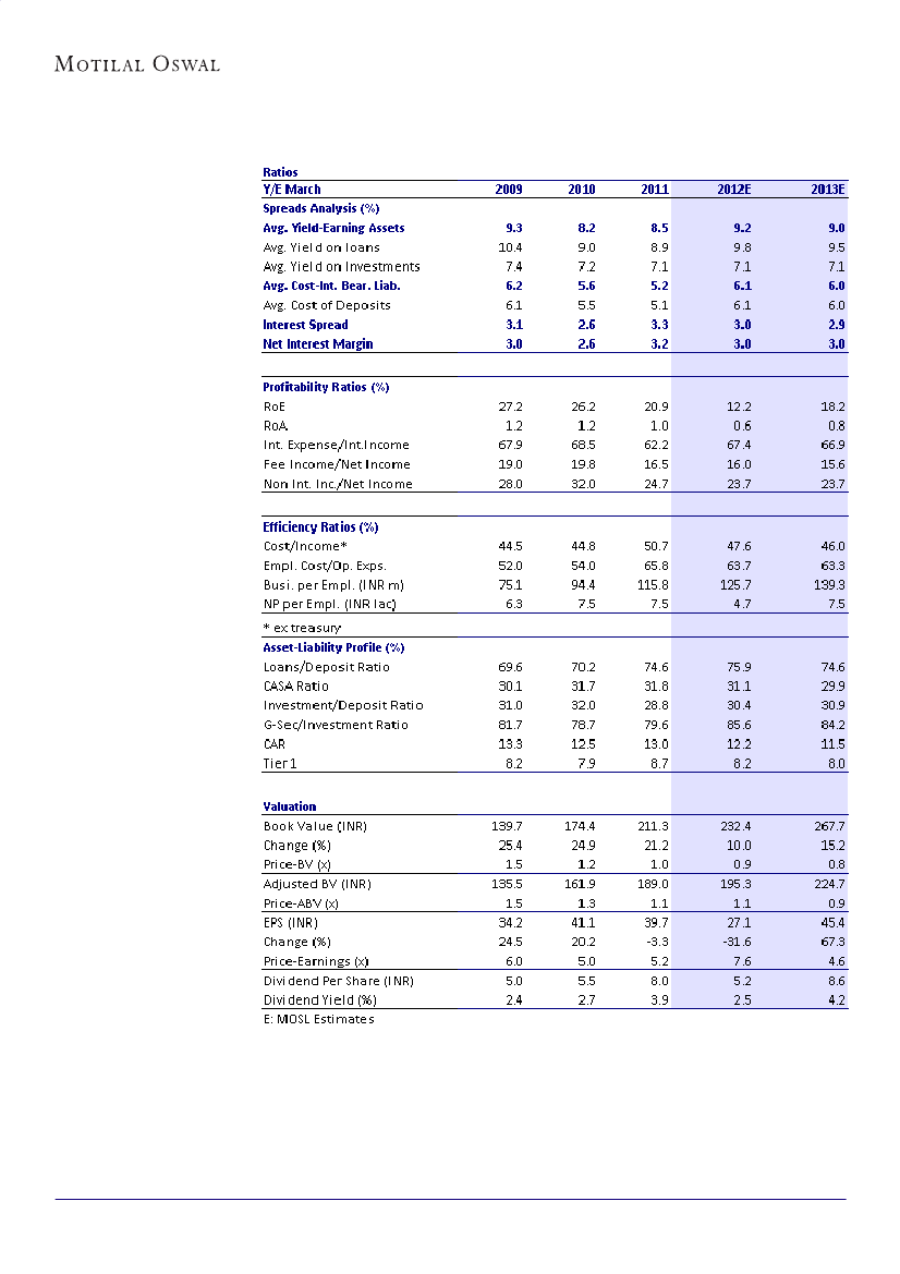 We expect RoA to be 0.6% for FY12 and improve to 0.8% for FY13 whereas RoE is expected to