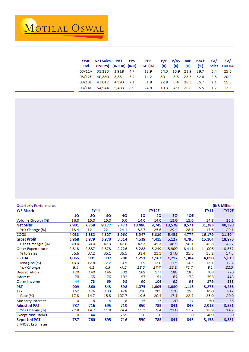 This follows strong operating performance in 3QFY12 and improved visibility of higher medium-term
