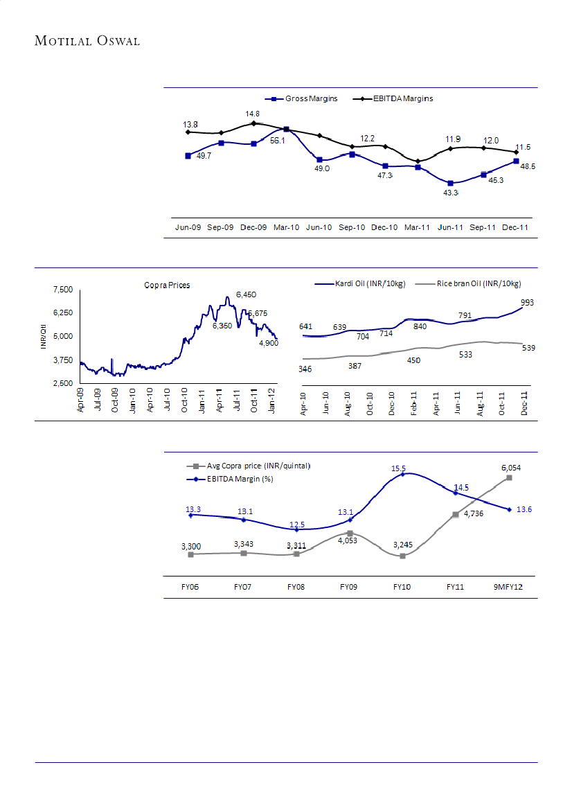 domestic portfolio and fall in copra prices. Consolidated EBITDA margin contracted by 70bp to 11.5% due to