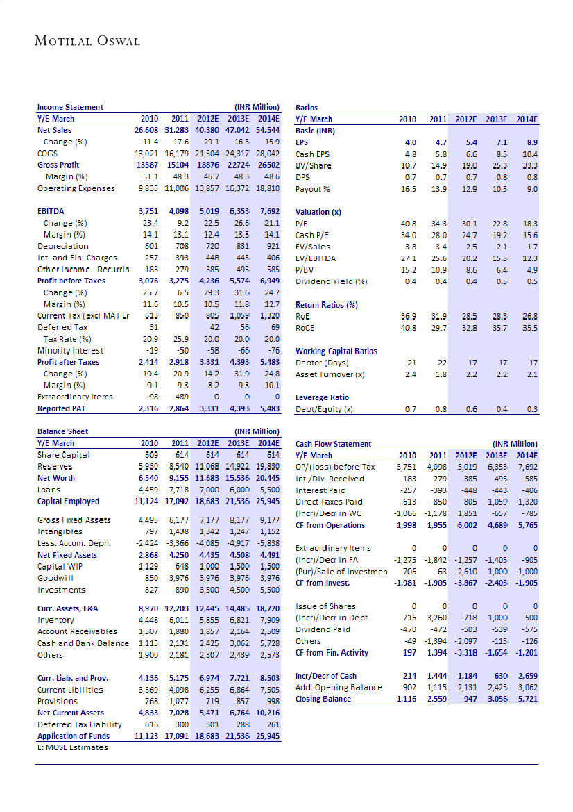 introducing our EPS estimate for FY14 at INR8.9. We are also upgrading our recommendation on the stock to