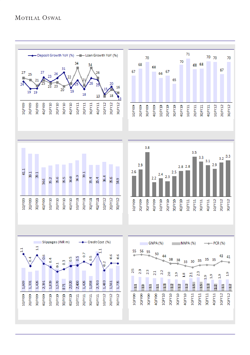 YoY to INR683b. CD ratio improved 300bp QoQ to 70%. Management has guided loan growth of 20%+ for FY12.
