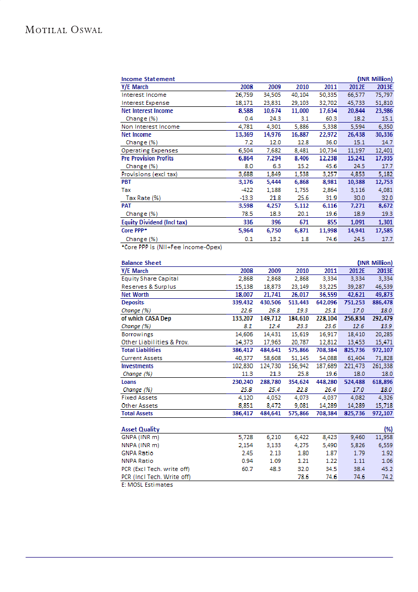 and RoE are likely to be ~1% and 19%+, respectively over FY12/13. Maintain