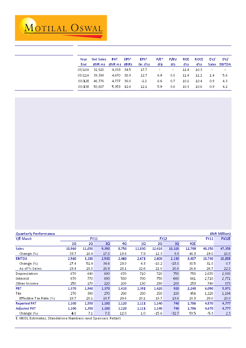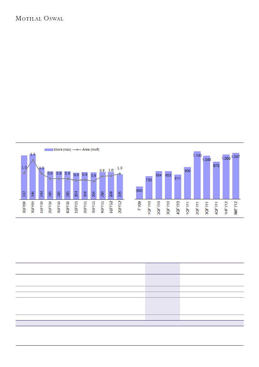 in 1HFY12. Store-level EBIDTA has also registered an increase 3QFY12, deduced from 9MFY12 EBIDTA of INR35/
