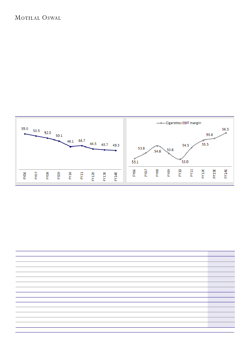 power. It increased prices by ~6% in FY12 so far. We estimate the cigarette