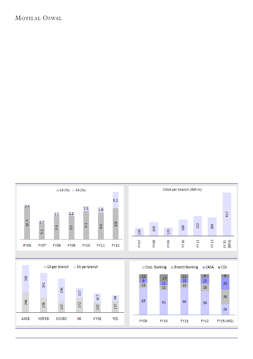 and SME relationships, YES expects to achieve CASA ratio of 30% by FY15 (15% at