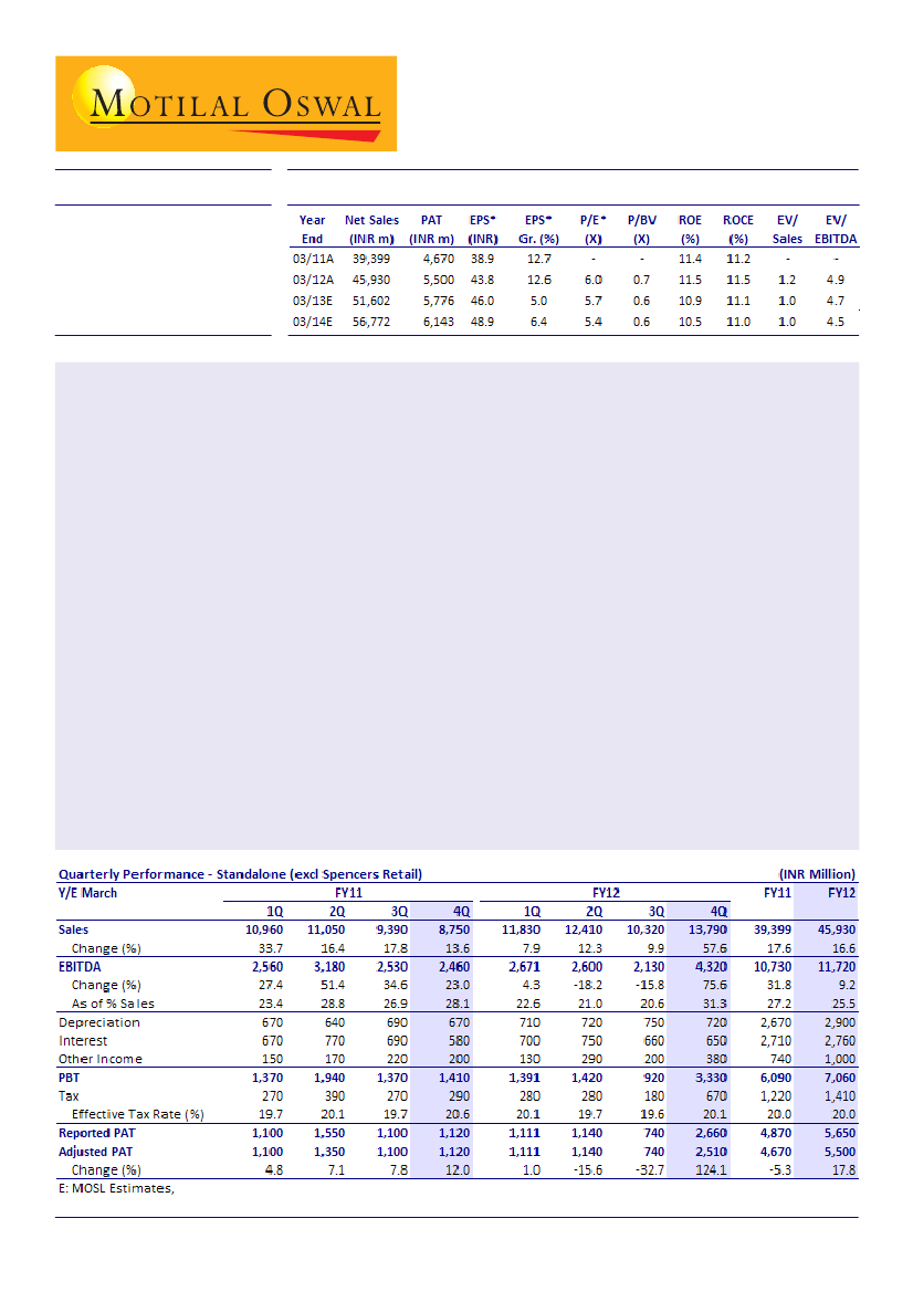 stood at INR690m for 4QFY12, ~INR400m higher than our estimate. Also, the tariff order approval led to