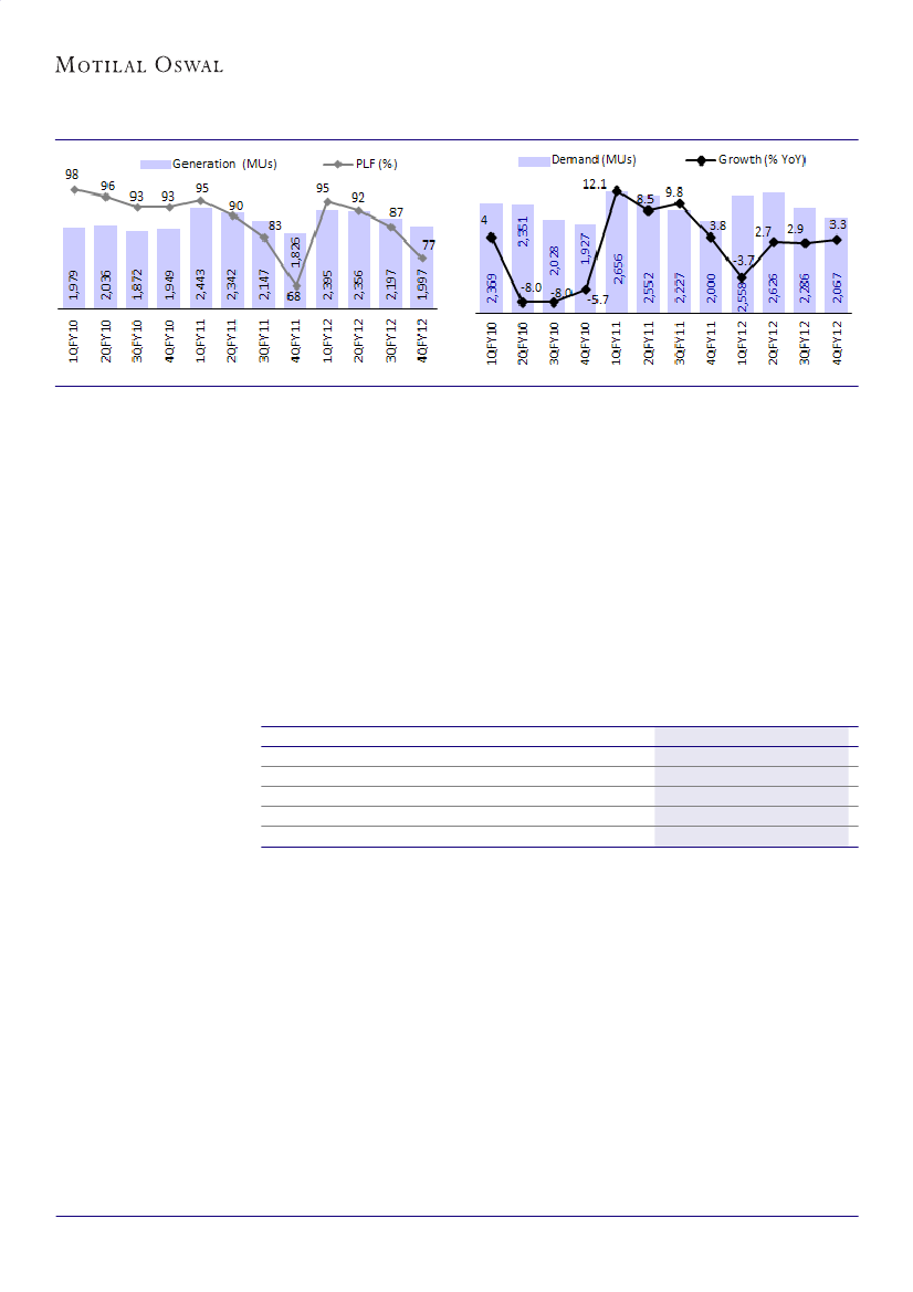 sales stood at 1.8BUs units (up 3% YoY). Average PLF for the plant stood at 77% v/s 68% YoY. For FY12 PLF for