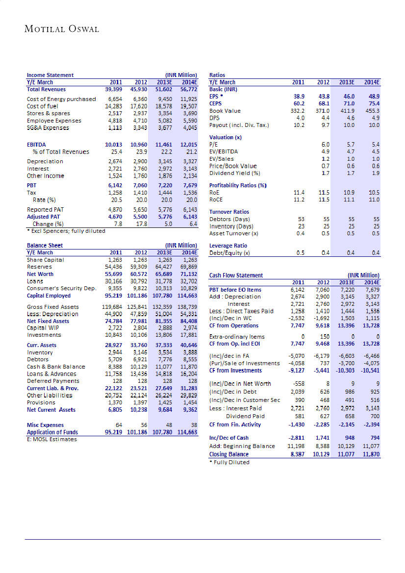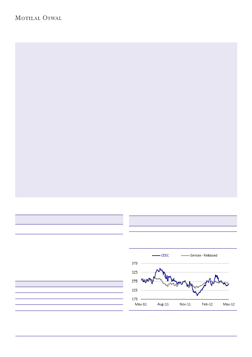 We expect CESC to report standalone PAT of INR5.8b in FY13 (up 5% YoY) and INR6.1b in