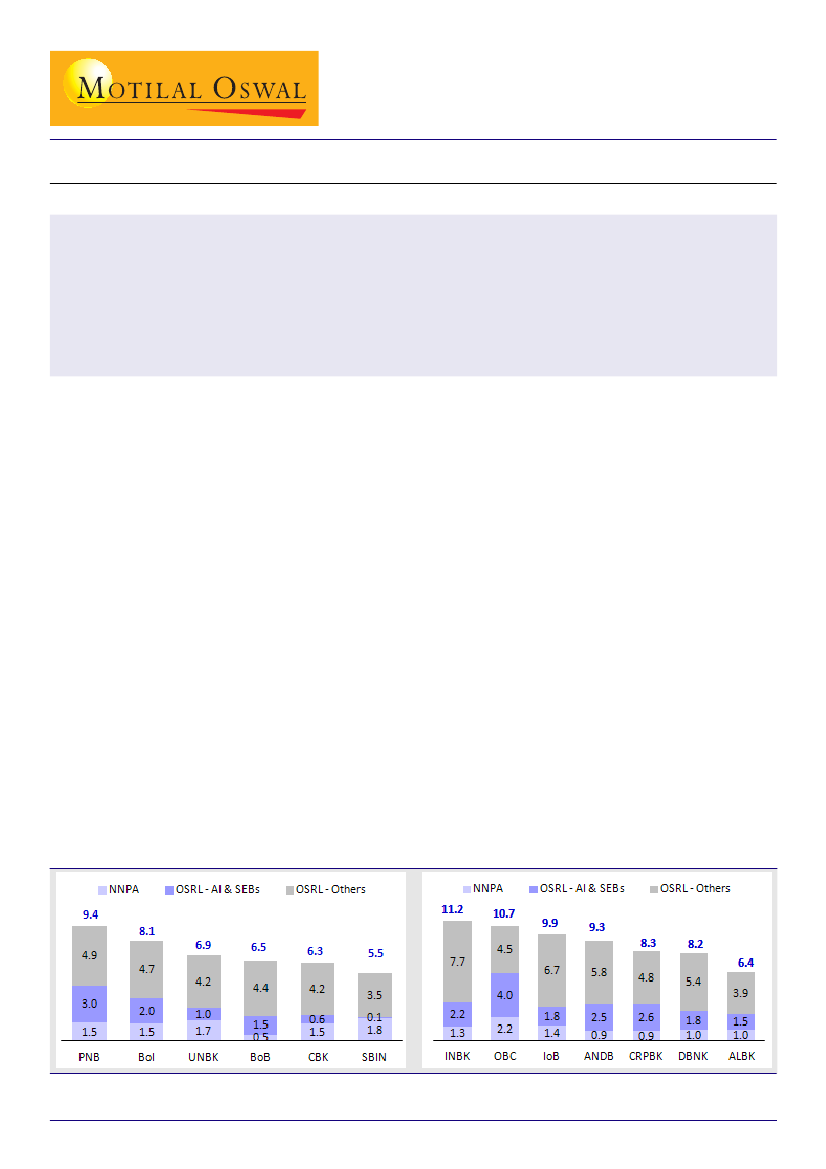 SBIN has the lowest proportion of NSL on the balance sheet at 5.5% (NNPA of 1.82% and OSRL of 3.65%). Also, it is the only