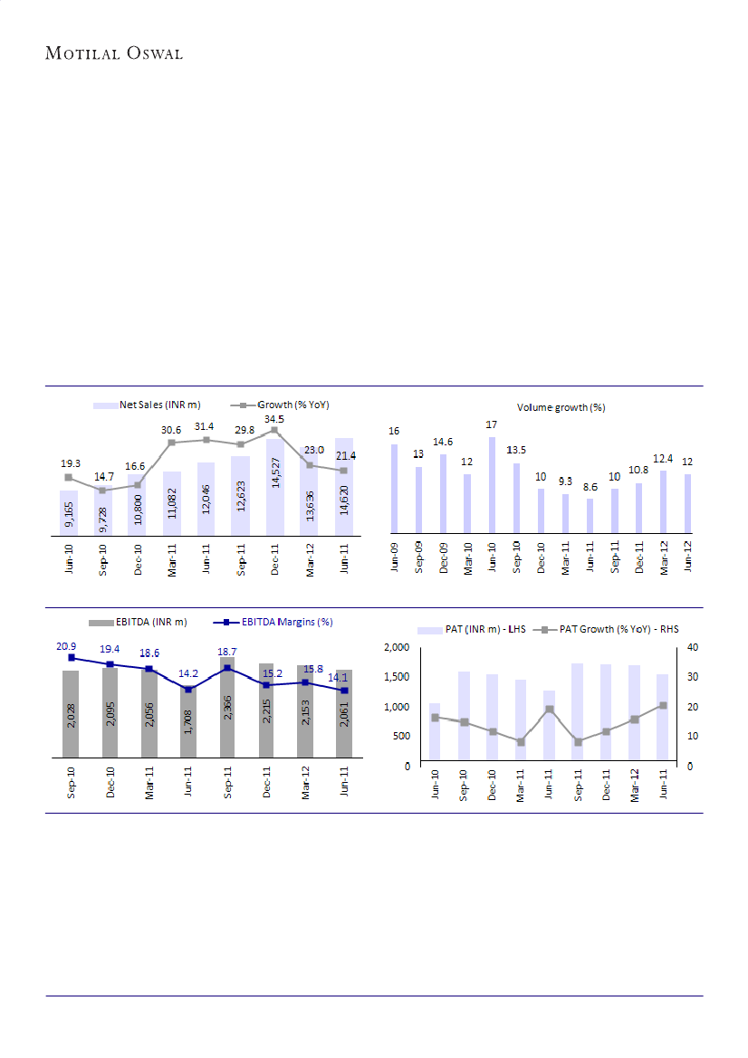 advertising expenses (up 300bp). EBITDA grew 16% to INR2.1b against our estimate of INR2b. Interest cost