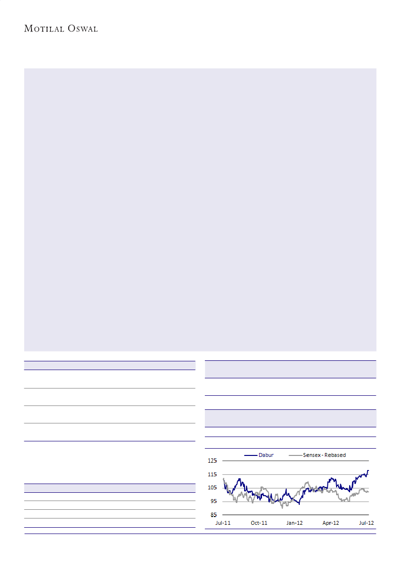 Dabur India has posted in-line results for 1QFY13, with adjusted PAT at INR1.54b against our estimate of