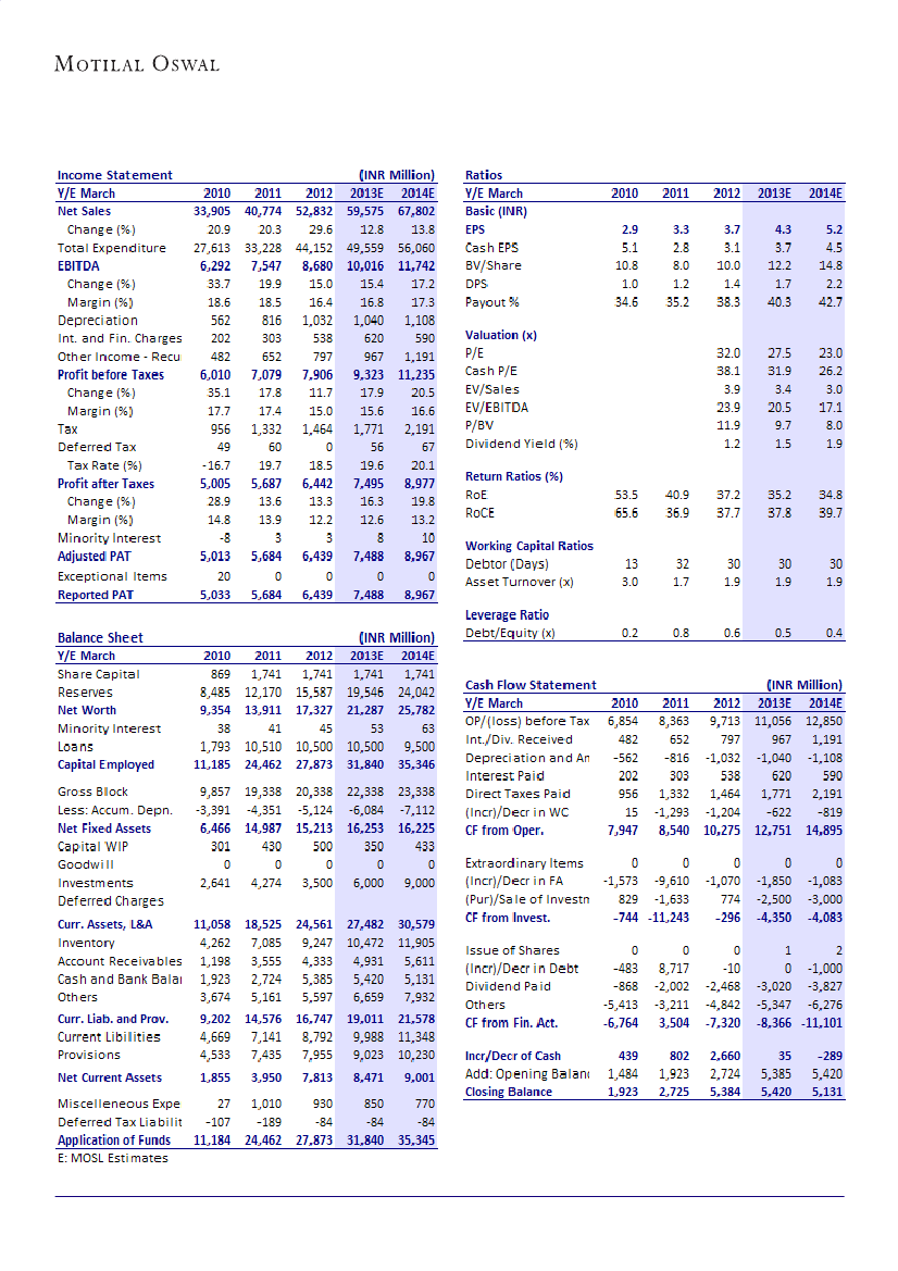 profit margins. We estimate PAT CAGR of 18% over FY12-14. The stock trades at 27.5x FY13E and 23x FY14E EPS.