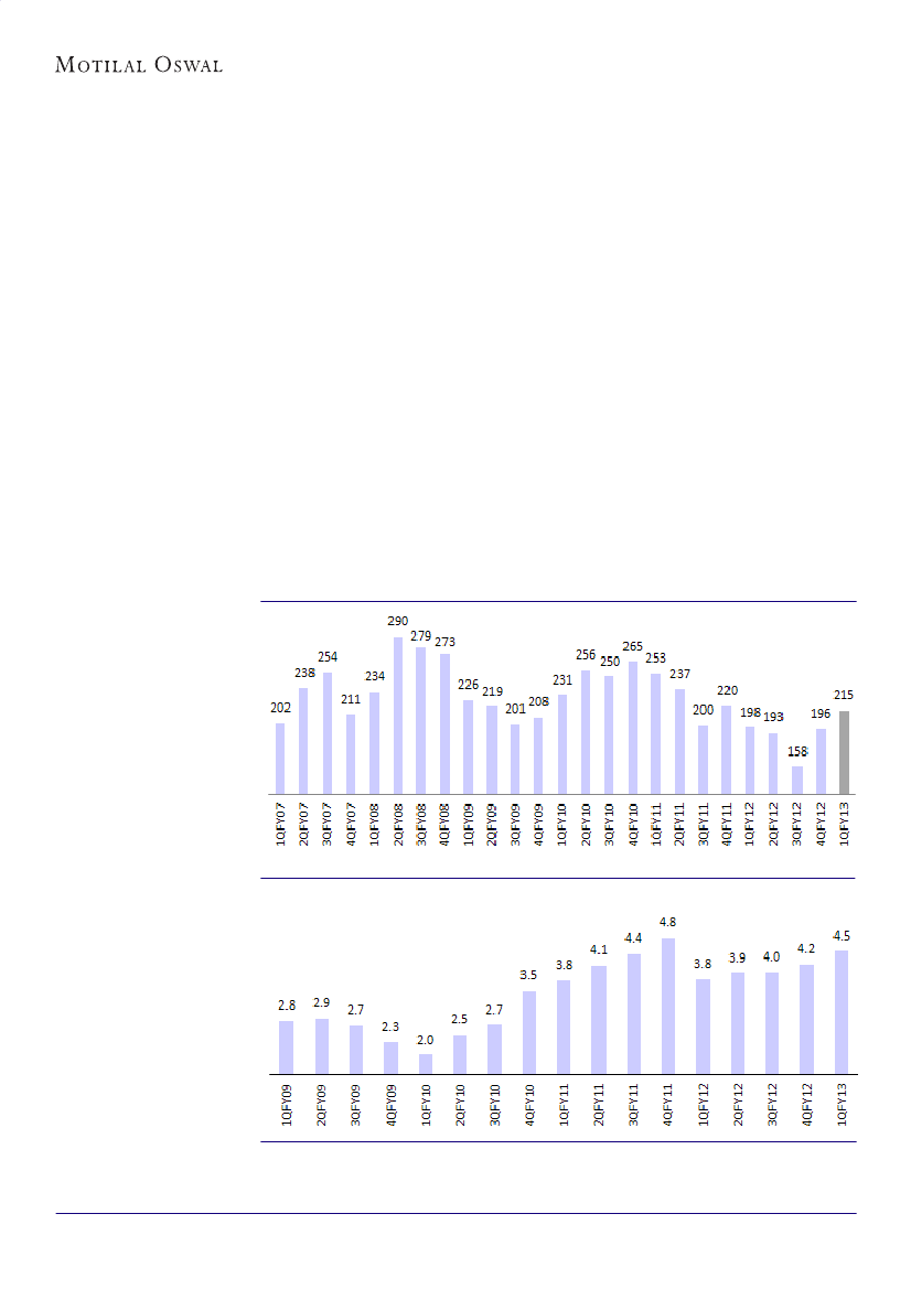 Flagship Zee TV's average GRPs improved from 158 in 3QFY12 to 215 in 1QFY13. Zee has largely introduced