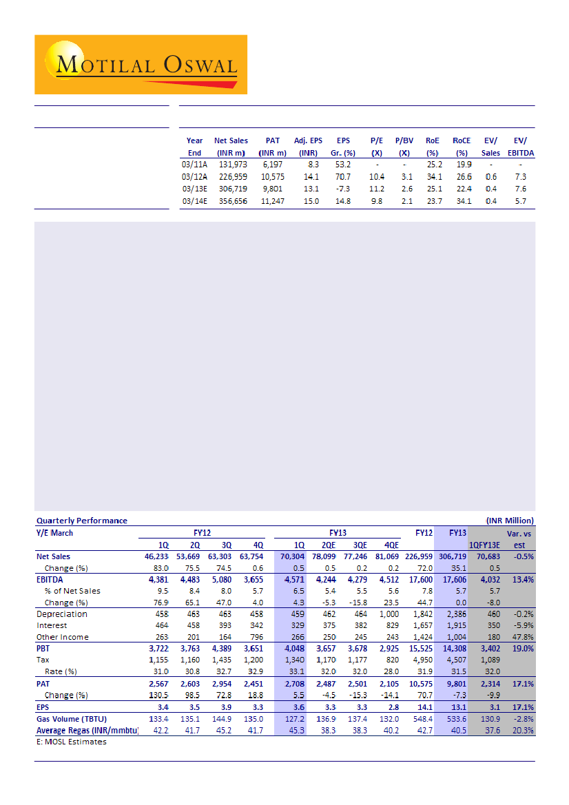 Petronet LNG's (PLNG) reported numbers for 1QFY13 were ahead of