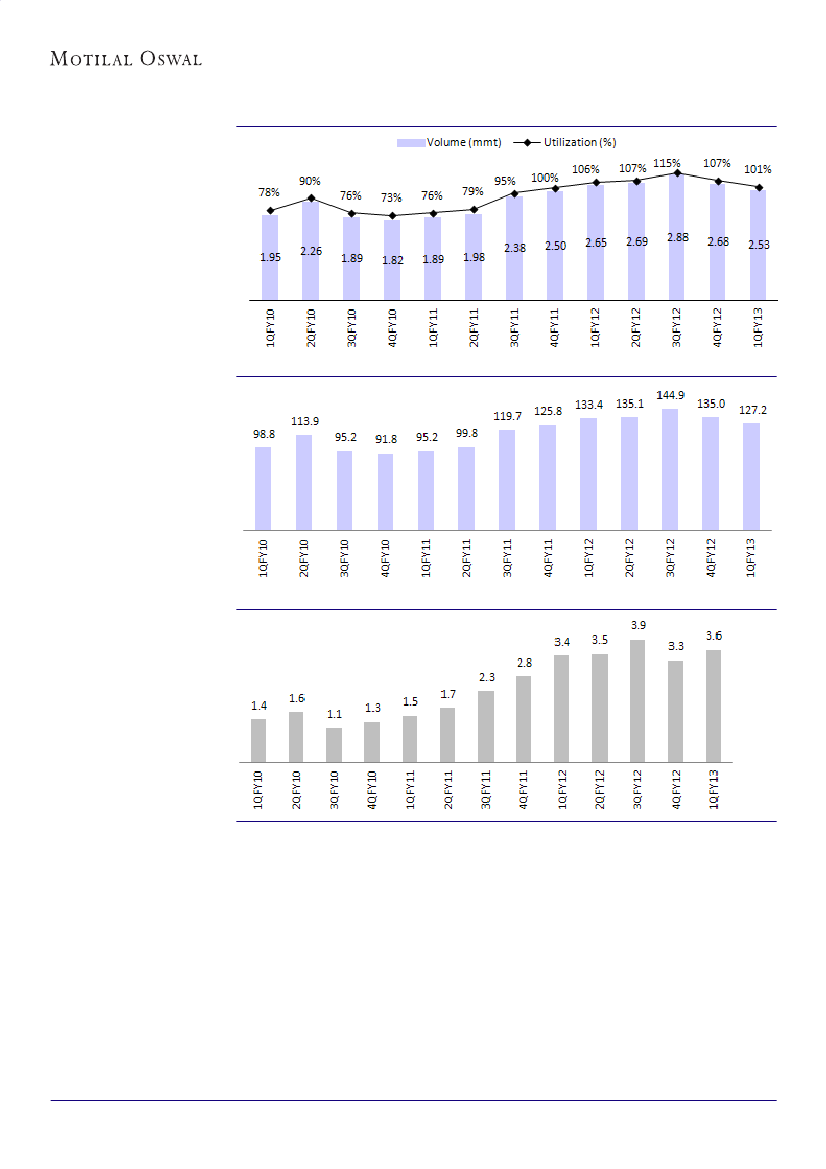 utilization (>100%) levels, and (b) higher marketing margins on spot volumes. FY13 earnings would be muted