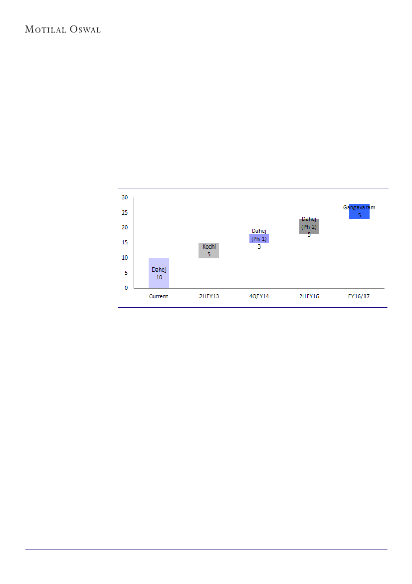 capacity of 3mmt), (b) Dahej expansion by the end of 2015 (taking overall capacity to 18mmt), and (c)