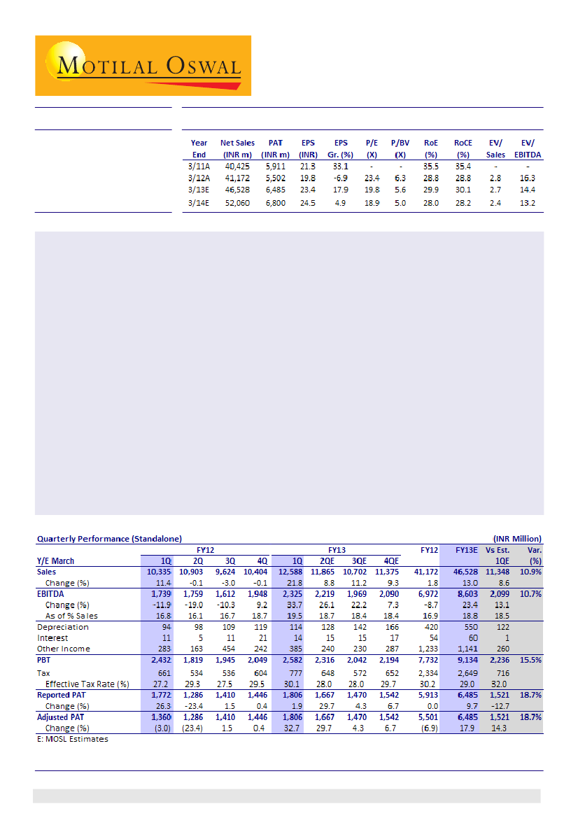 revenues. EBIT margins are expected at ~20%. We have upgraded our earnings estimate by 7%/2% for FY13/