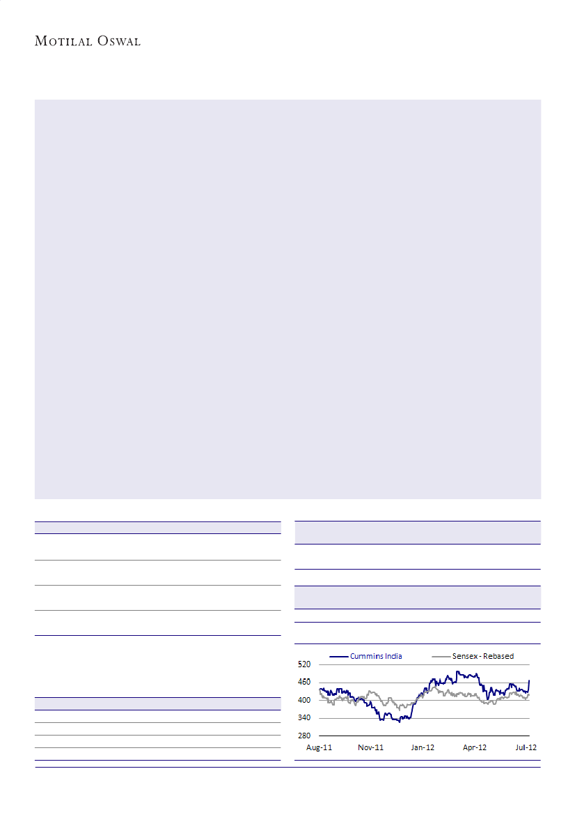 Cummins India (Bloomberg: KKC IN) 1QFY13 revenues at INR12.6b (up 20%