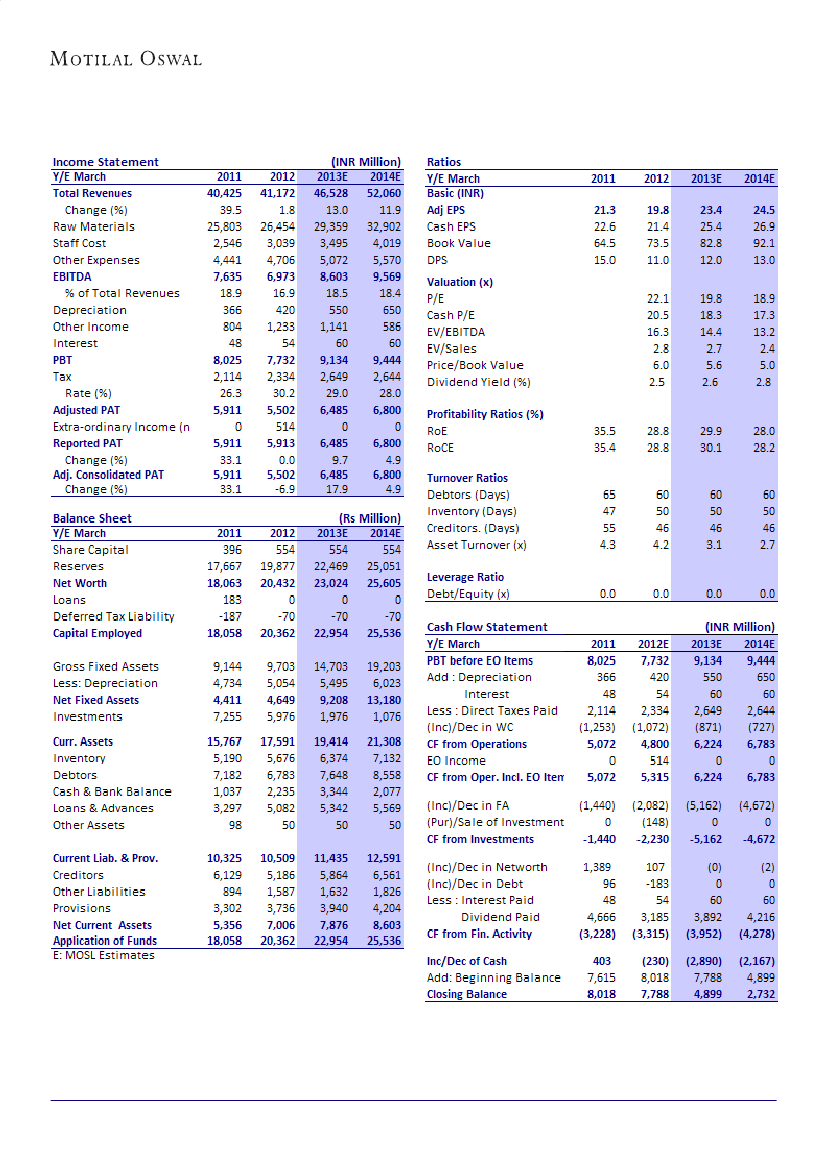 Our estimates factor in FY13 revenue growth at 13% (guidance 13-15%) and EBIT margins at