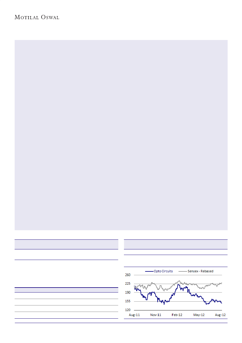 Opto Circuits' 1QFY13 performance was above our estimates.