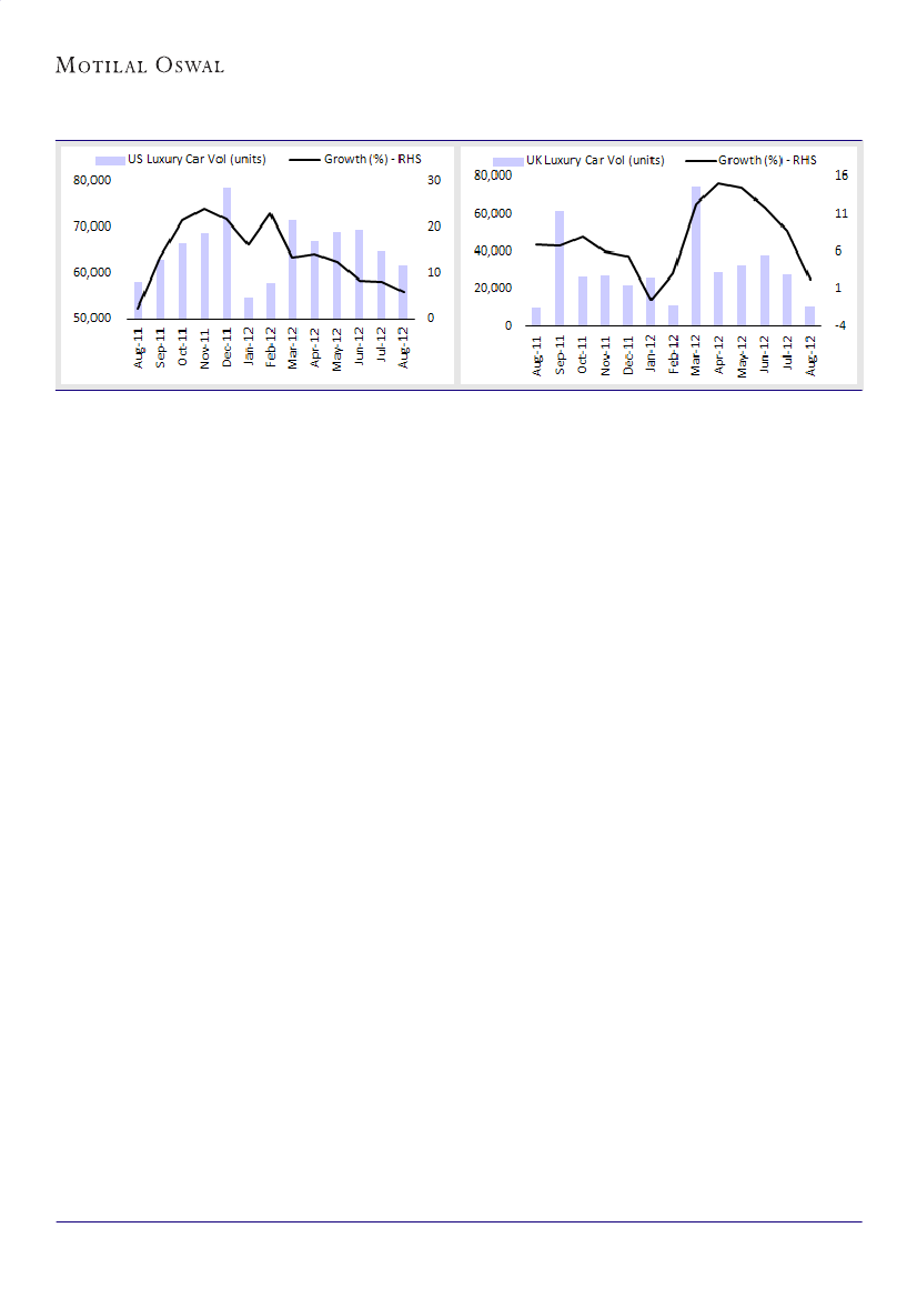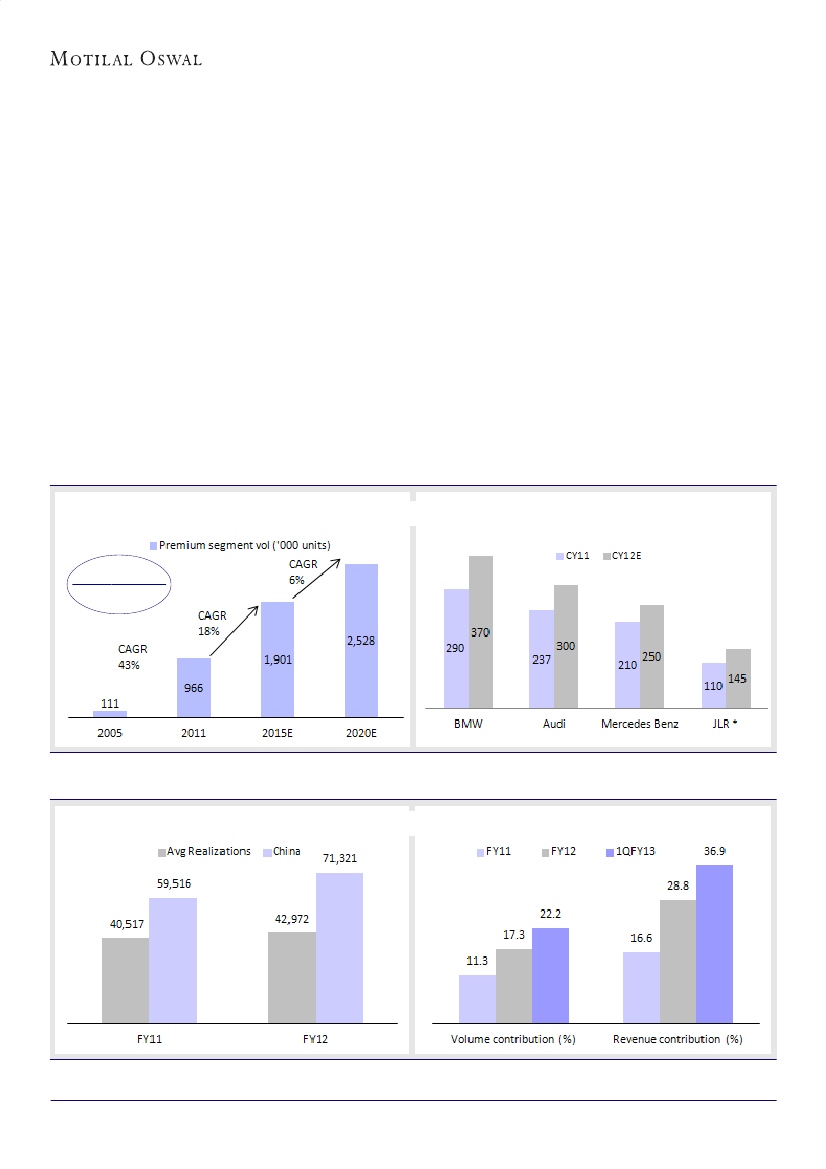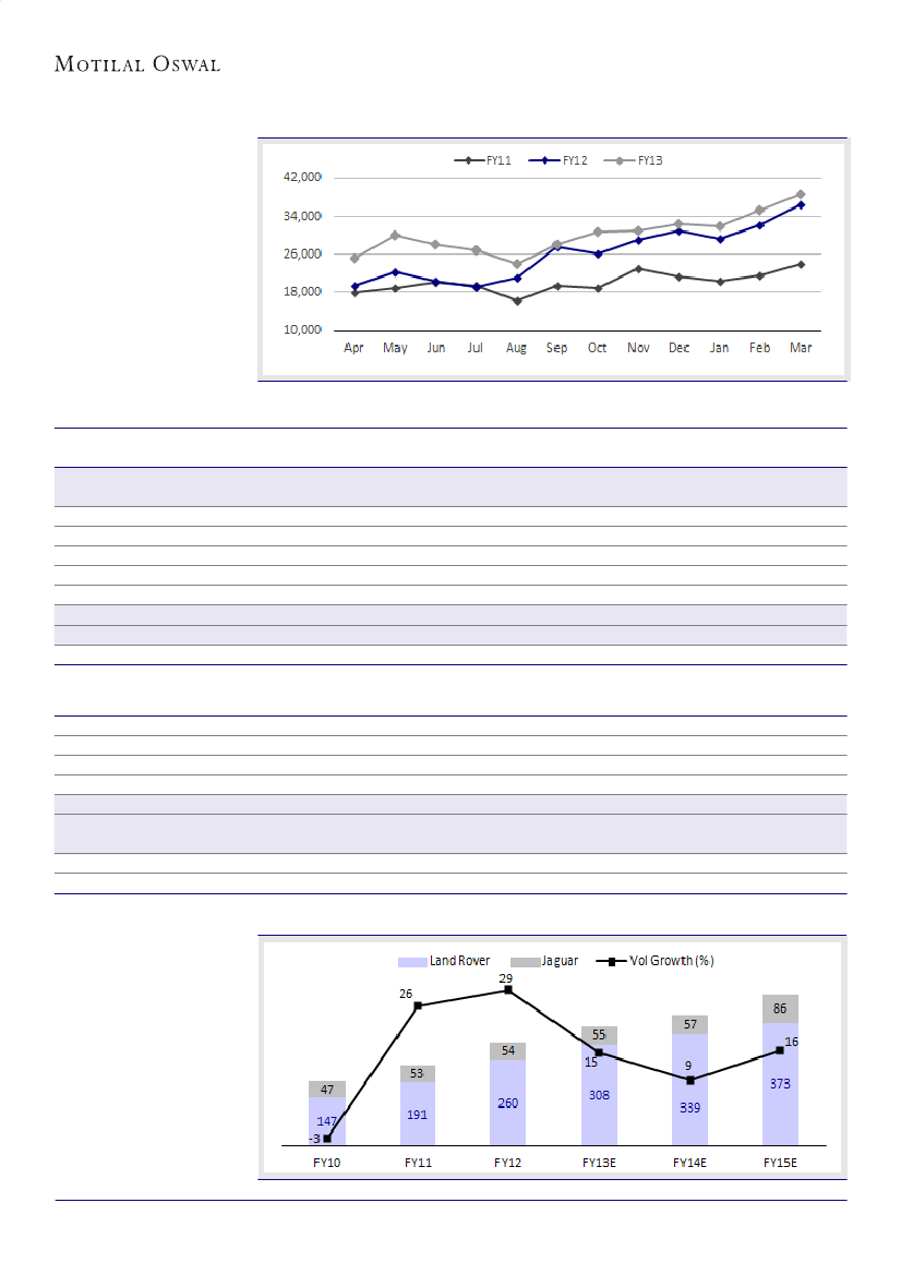 JLR and 18% for Mercedes Benz. Expect JLR's volumes to grow ~15% in FY13 leading