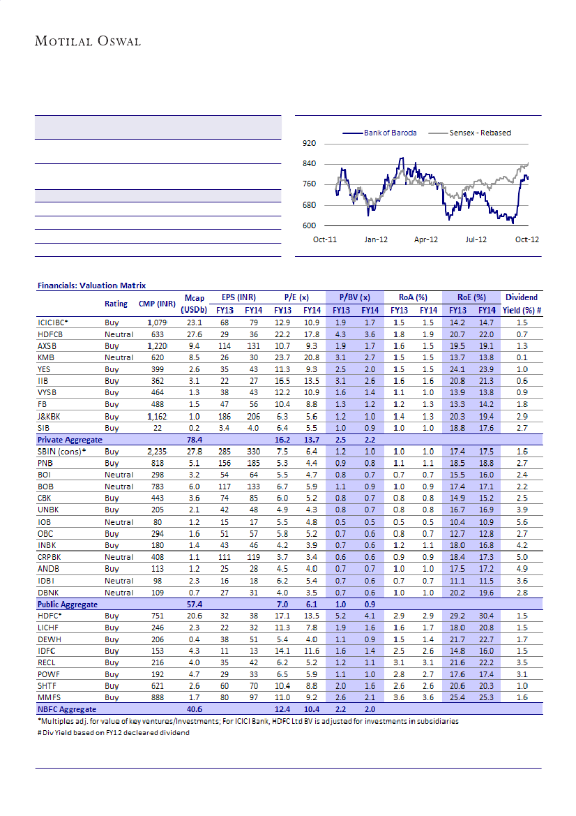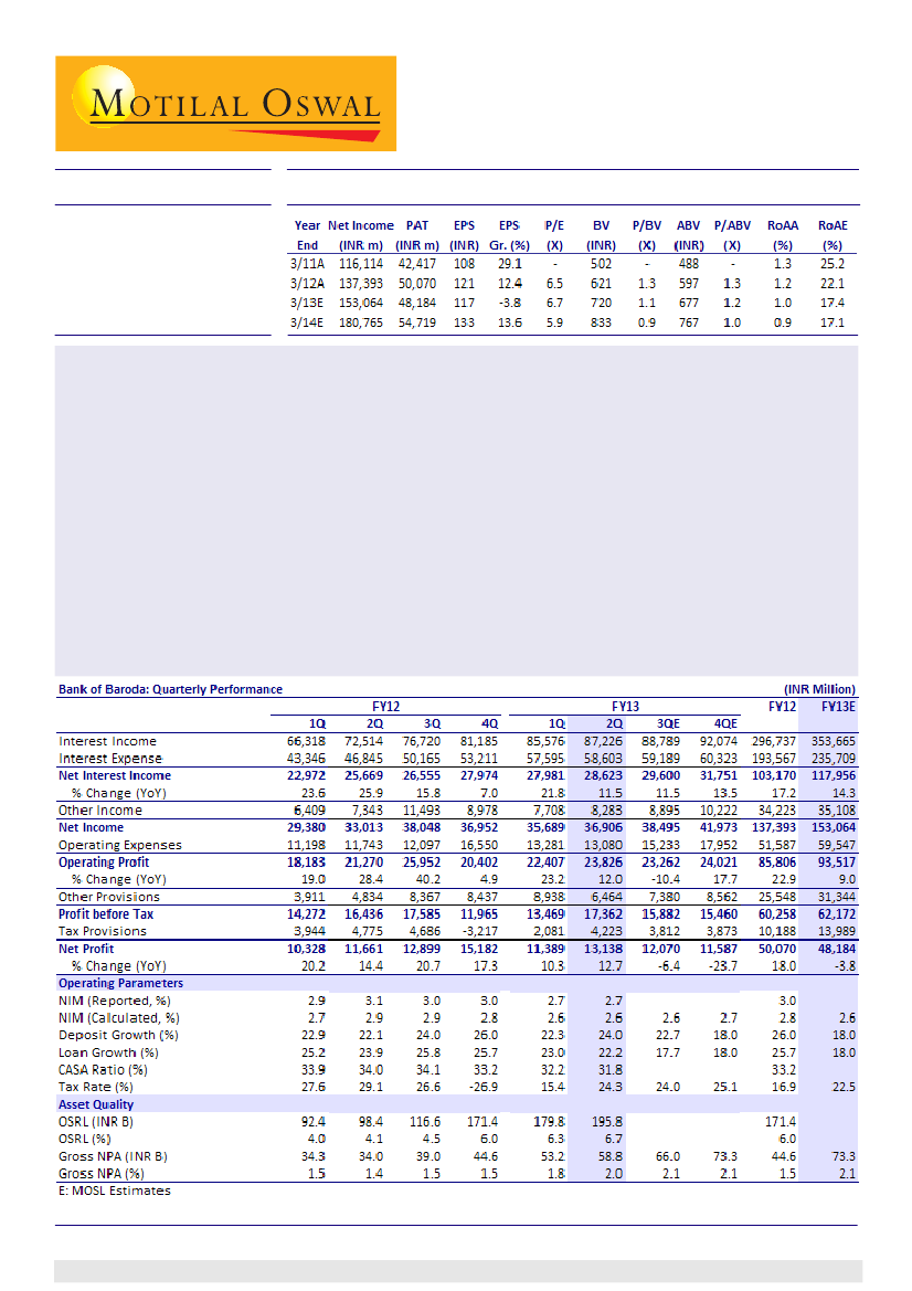 Bank of Baroda reported 2QFY13 PAT grew 13% YoY to INR13.1b (21% above est.) driven by write-back of INR1.3b