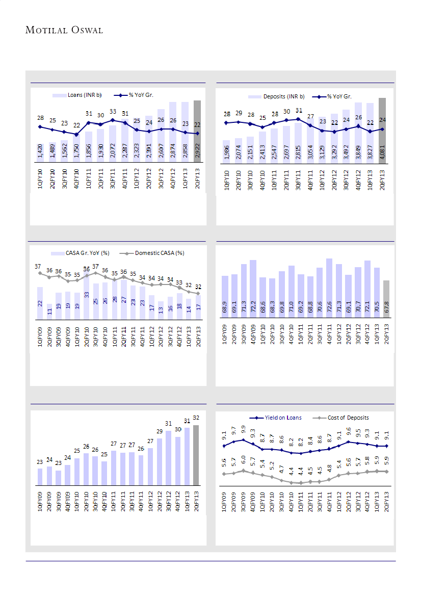 26% and (3) Trading gains were strong at INR1.1b v/s INR815m in 1QFY13 and INR102m in 2QFY12 - helping PAT growth.