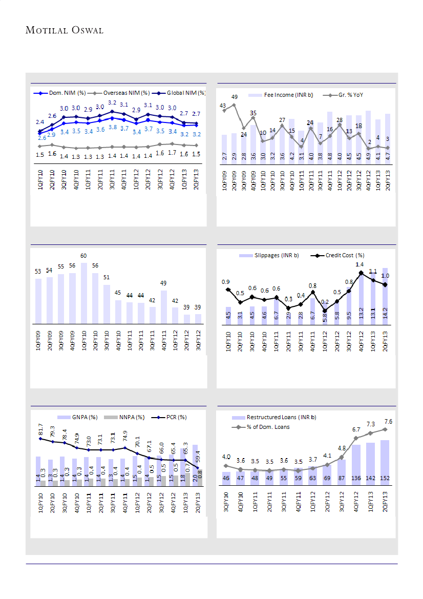 Slippages for 2QFY13 were at an elevated level of INR14.2b (annualized slippage ratio of 2.4%) and recoveries